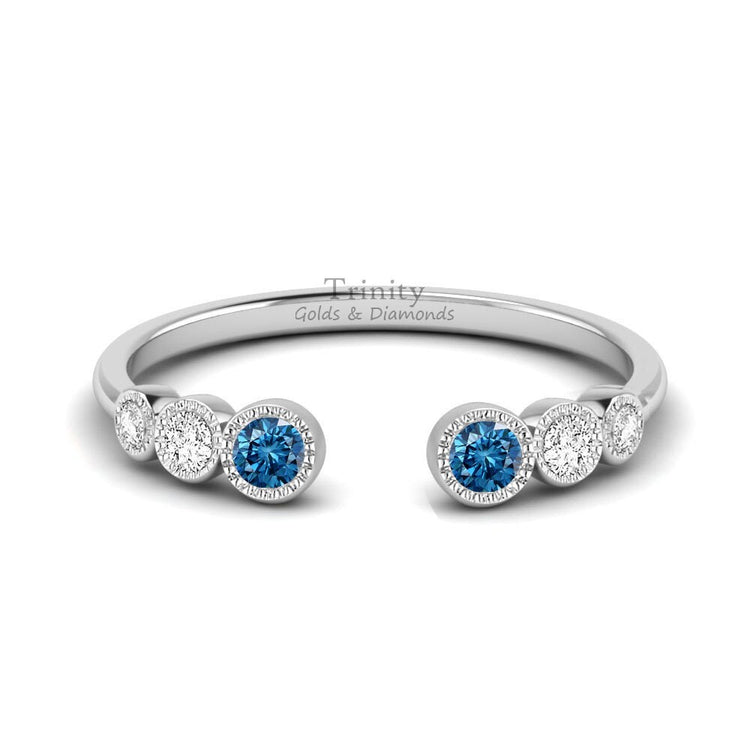 Promise Open Band Ring, Hug Band Ring, Gemstone Open Band Ring, Sapphire Open Band, Blue Sapphire Diamond Open Wedding Anniversary Band
