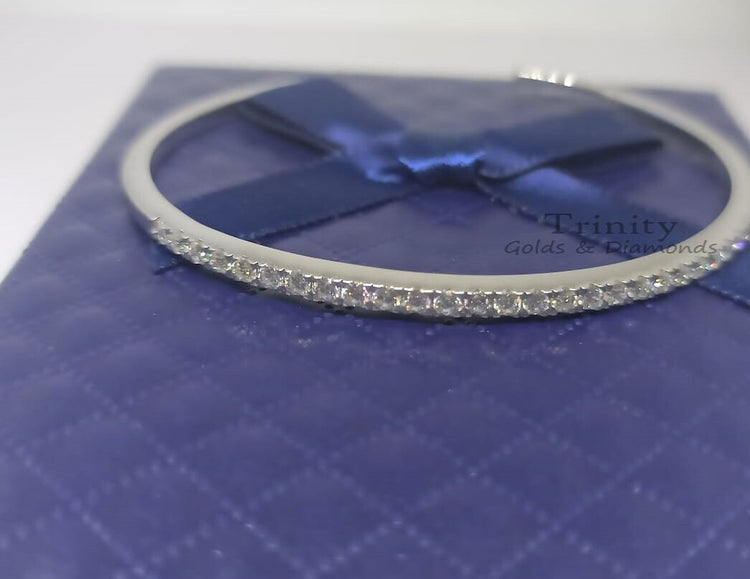 14k White Gold Plated, 3.00Ct Round Cut Moissanite And Diamond Bangle, Handmade Bracelet, Engagement Wedding Bangle Bracelet, Gift For Her