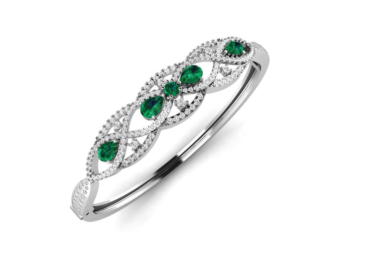 Diamond Bangles, Handmade Bracelet, Emerald Bracelet, Gift For Her, Green Emerald Moissanite Bangle Bracelet With 14k White Gold Plated