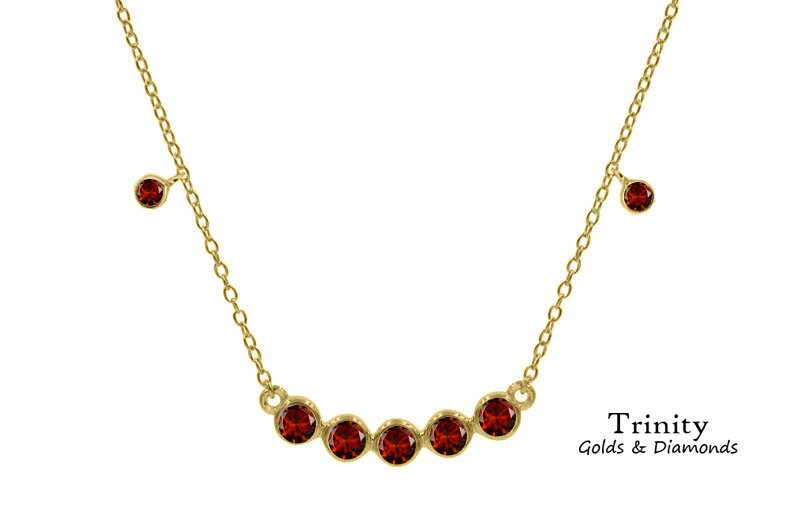 Red Ruby Bezel Curved Bar Necklace/ 925 Sterling Silver Ruby Necklace/ Anniversary Gift/ Dainty Ruby Bar Necklace/ Women's Necklace