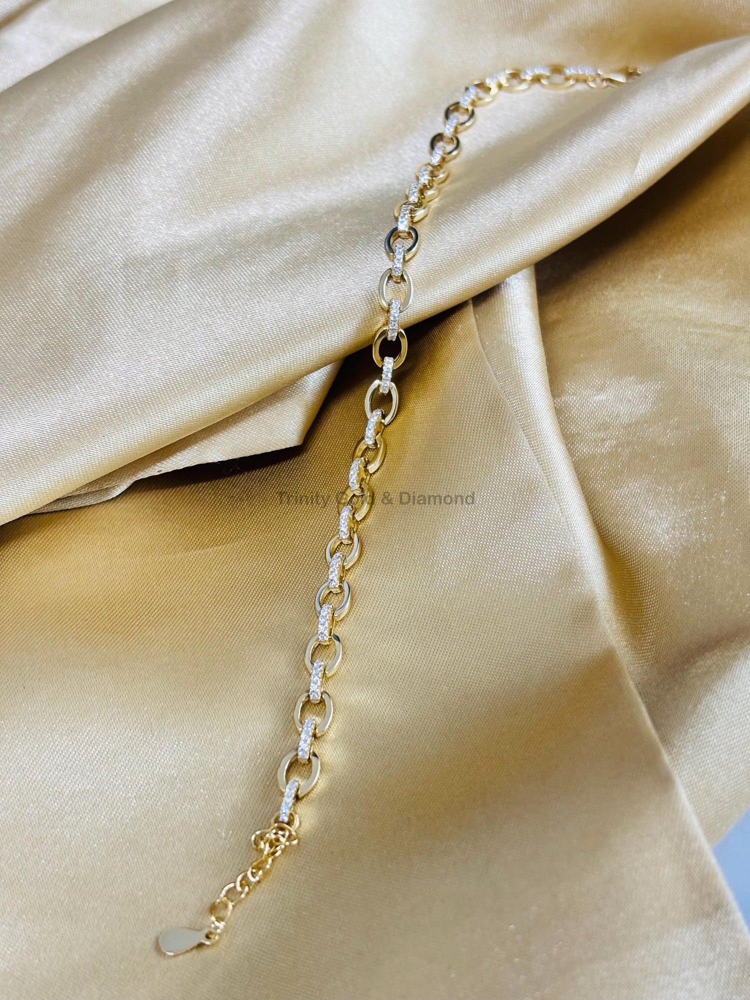 Elevate your wrist game with this dainty yet striking chain link bracelet. Crafted in durable 14K gold plating over sterling silver, each paperclip link is accented with shimmering cubic zirconia for added elegance. The bracelet includes an adjustable extender chain and a lobster clasp for easy, secure wear. Perfect for stacking, gifting, or wearing solo for everyday sparkle.