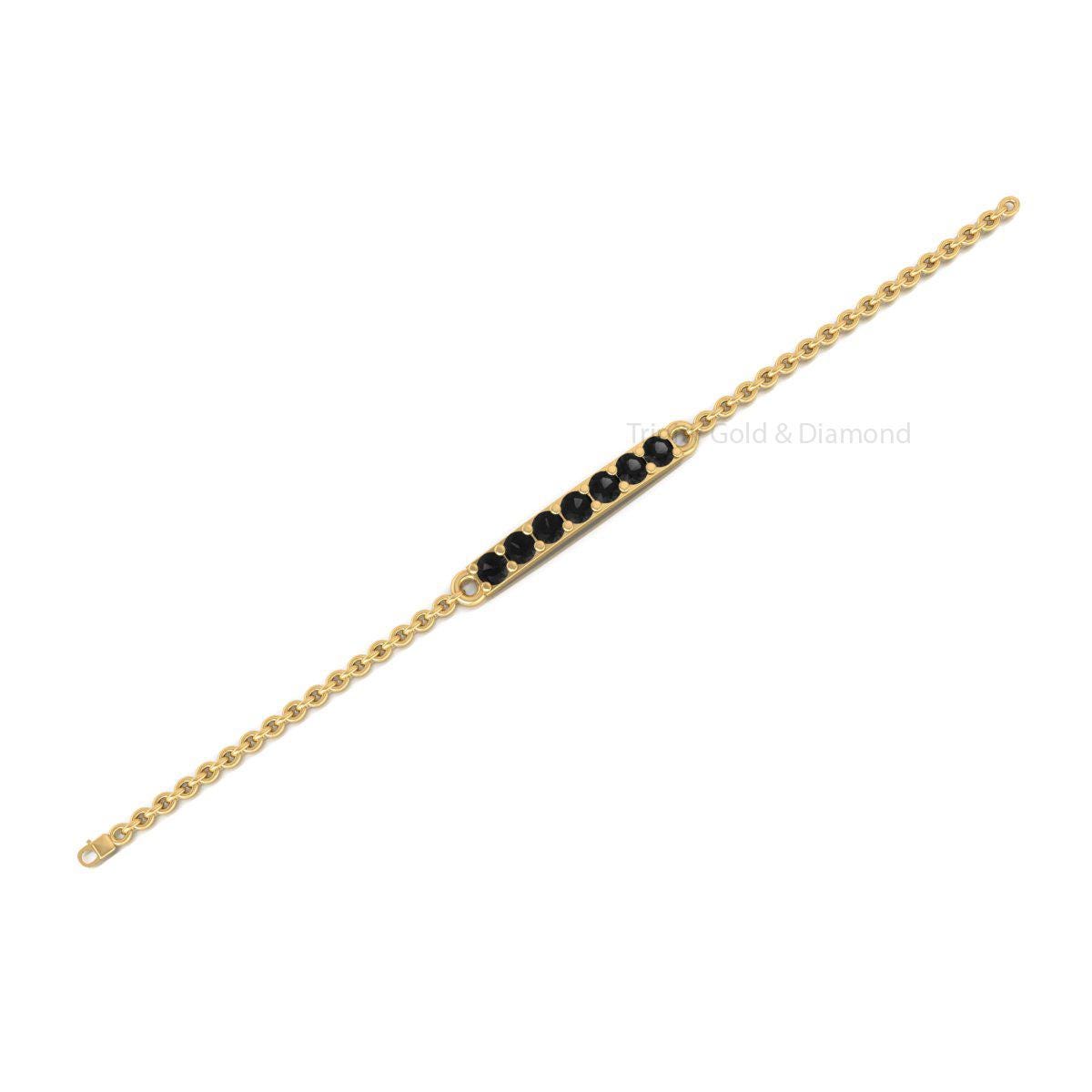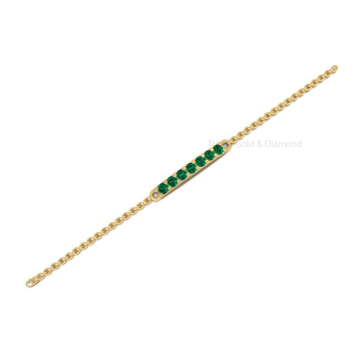 Add a pop of color and elegance to your wrist with this dainty green gemstone bar bracelet. Featuring a sleek horizontal bar encrusted with vivid green round stones, the bracelet is crafted with a fine gold chain that feels effortlessly chic. Its lightweight, minimalist design is perfect for stacking, daily wear, or gifting to someone special. Whether worn alone or layered, this bracelet adds a vibrant yet refined touch to any outfit.