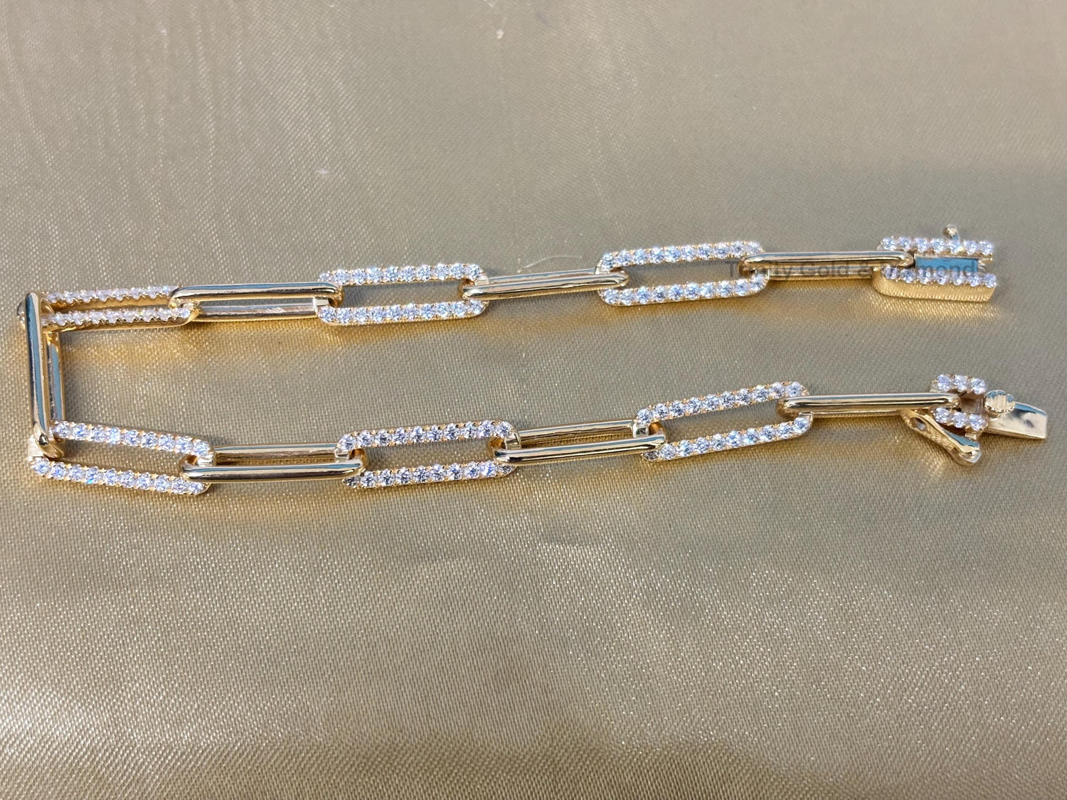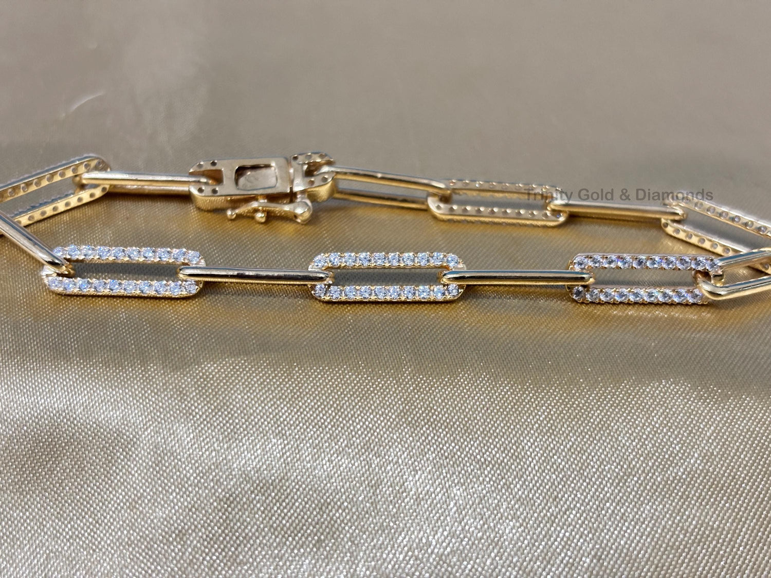 Paper Clip Link Bracelet For Women • 14KT Yellow Gold Over 925 Sterling Silver • Perfect Gift For Women • Size-5-12 Inches •