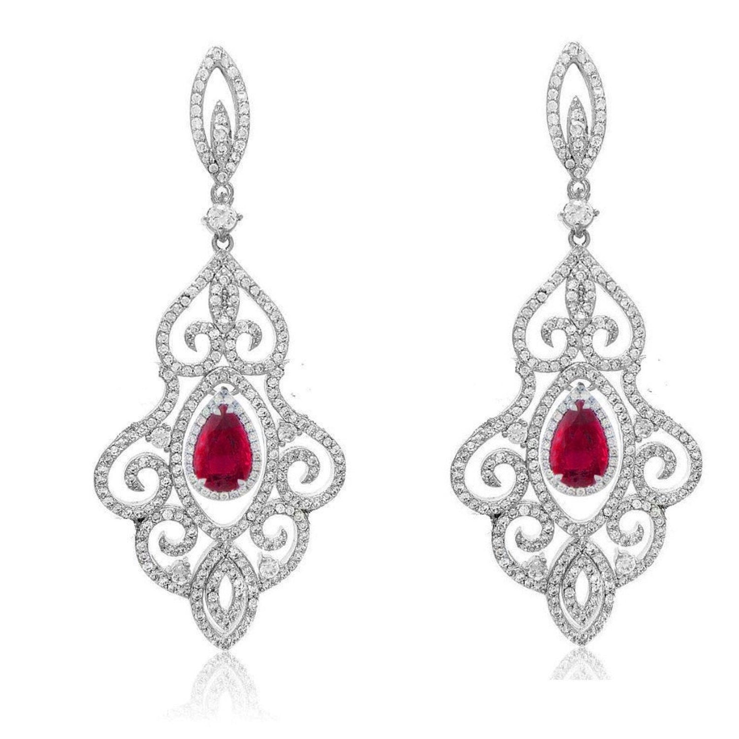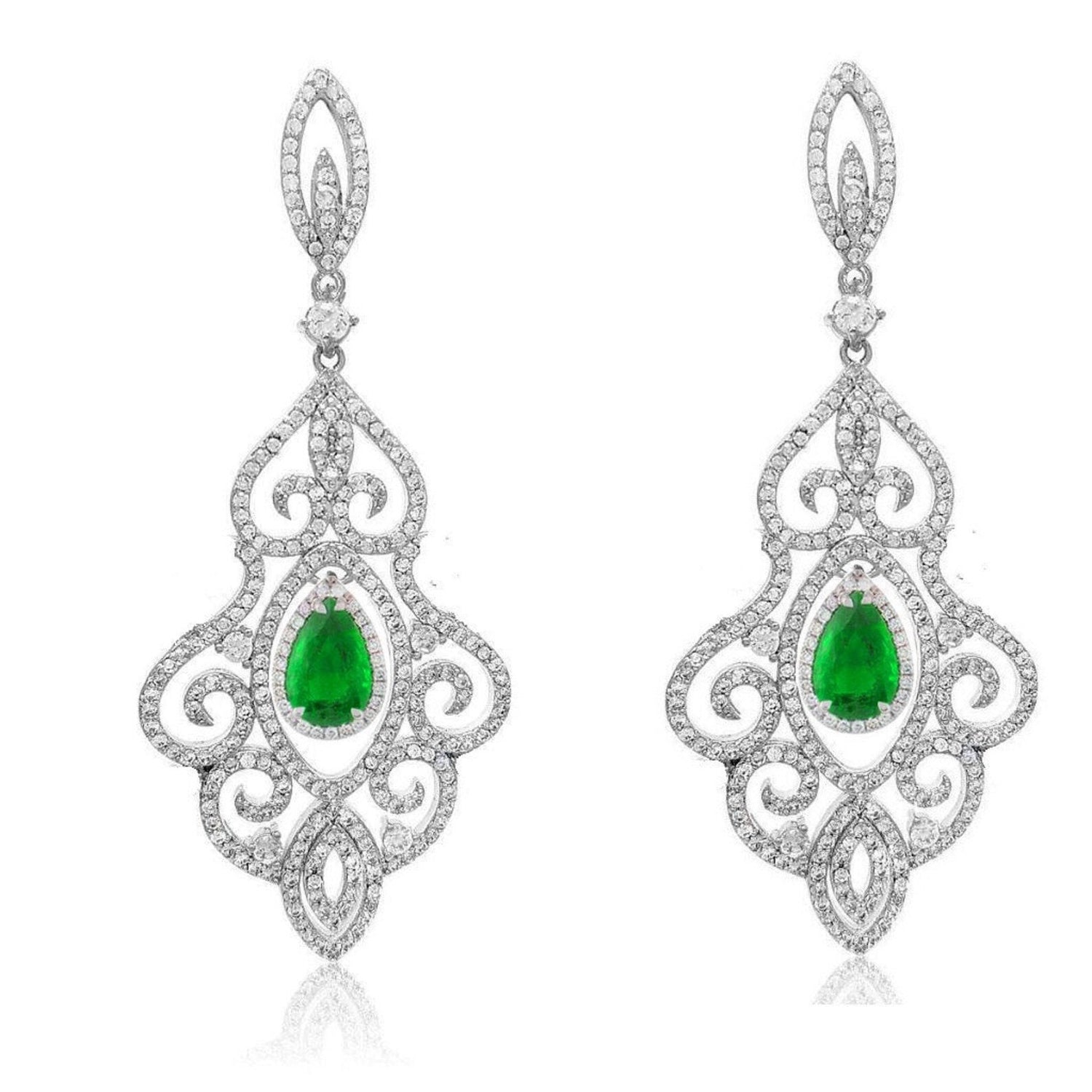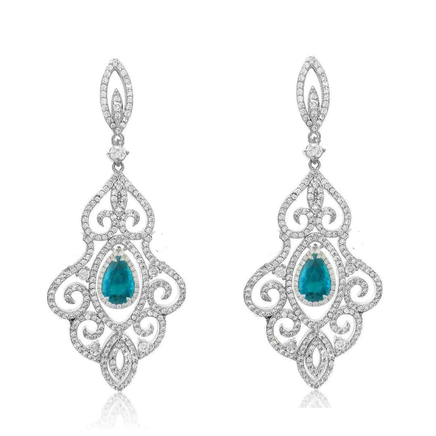 GEMSTONE CHANDELIER EARRINGS, Topaz And Diamond Dangle Chandelier Earrings In Silver, Dangle Earrings,925 Sterling Silver Earring Jewelry