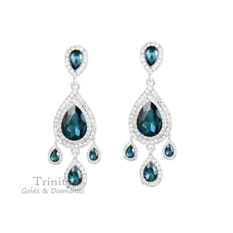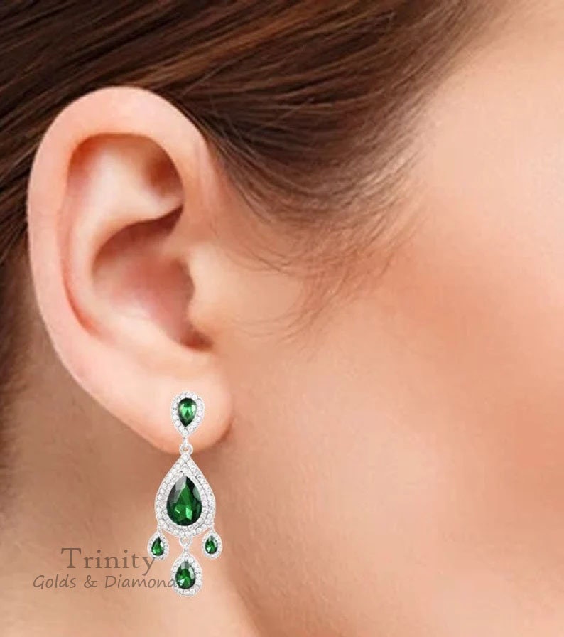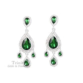 True Elegant ® Emerald Diamond Chandelier Earrings, Bridesmaid Luxury Drop Earrings, Designer Pear Stone Green Earring Gift For Siter,Gifts