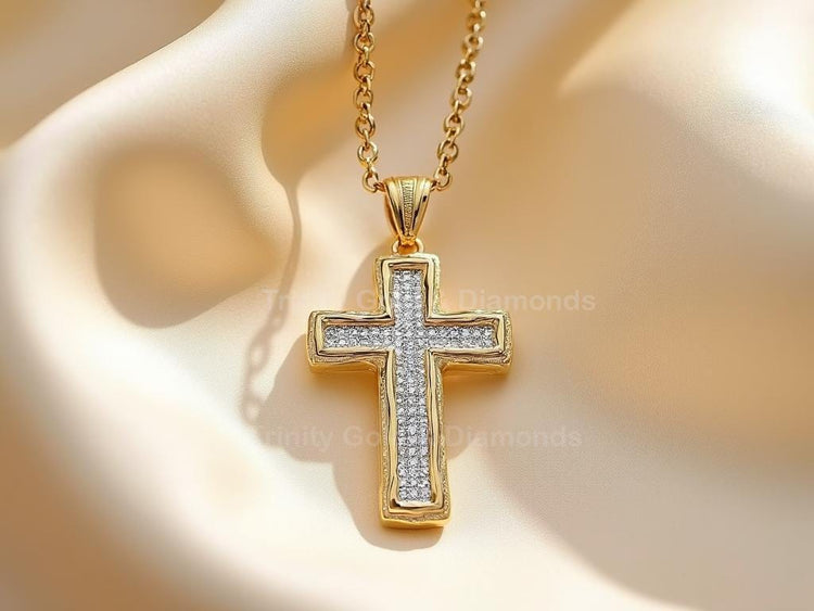 Cross Pendant Necklace • Pave Diamond Religious Charm • Unisex Faith Jewelry • Handmade Christian Gift for Men & Women