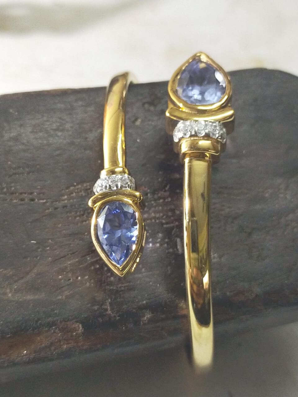 PEAR SAPPHIRE DIAMOND Twisted Bangle Bracelet With 10kt Yellow Gold Finish, Diamond Bangle, Diamond bar bracelet, Bracele,Mother's day Gift
