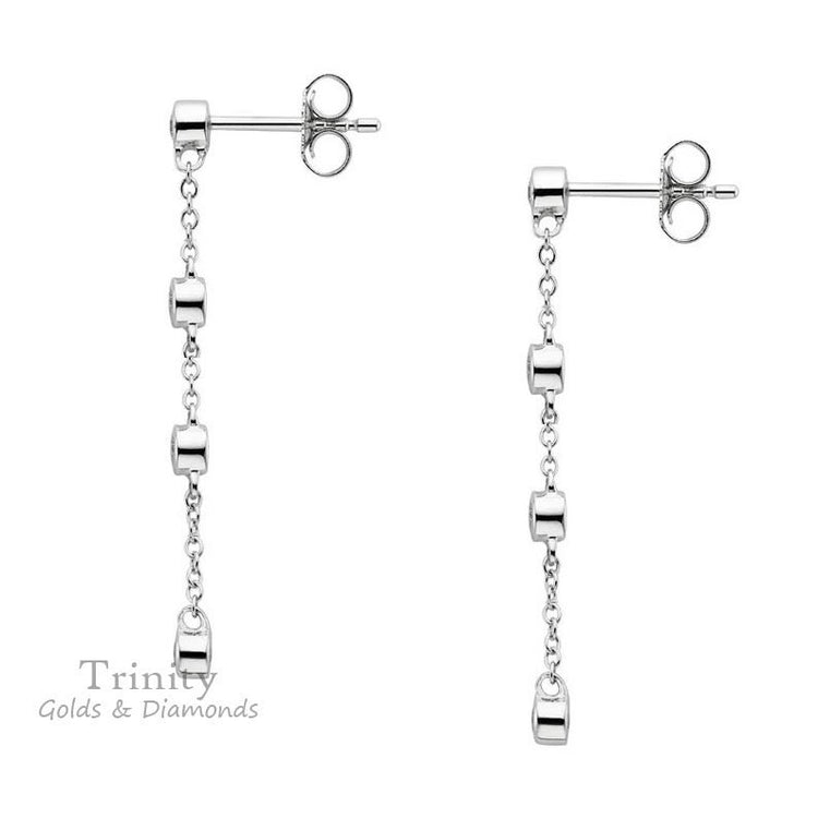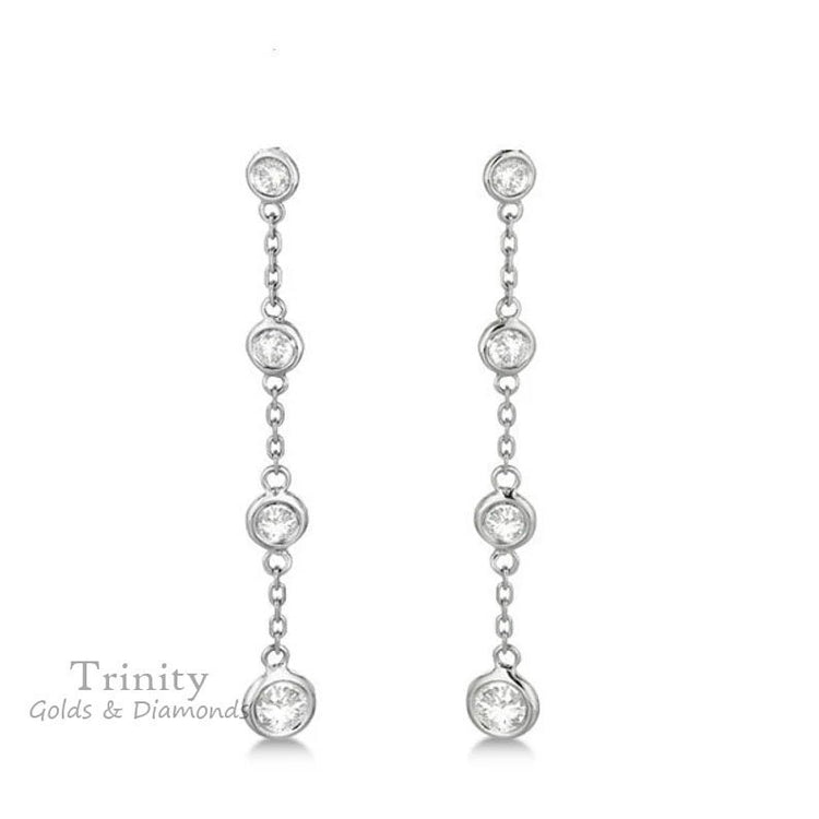 BEZEL SETTING DANGLE Drop Earring with 14KT White Gold Over Silver, Cool Earrings Diamond Earrings, Bezel Set Earrings, Silver Earrings