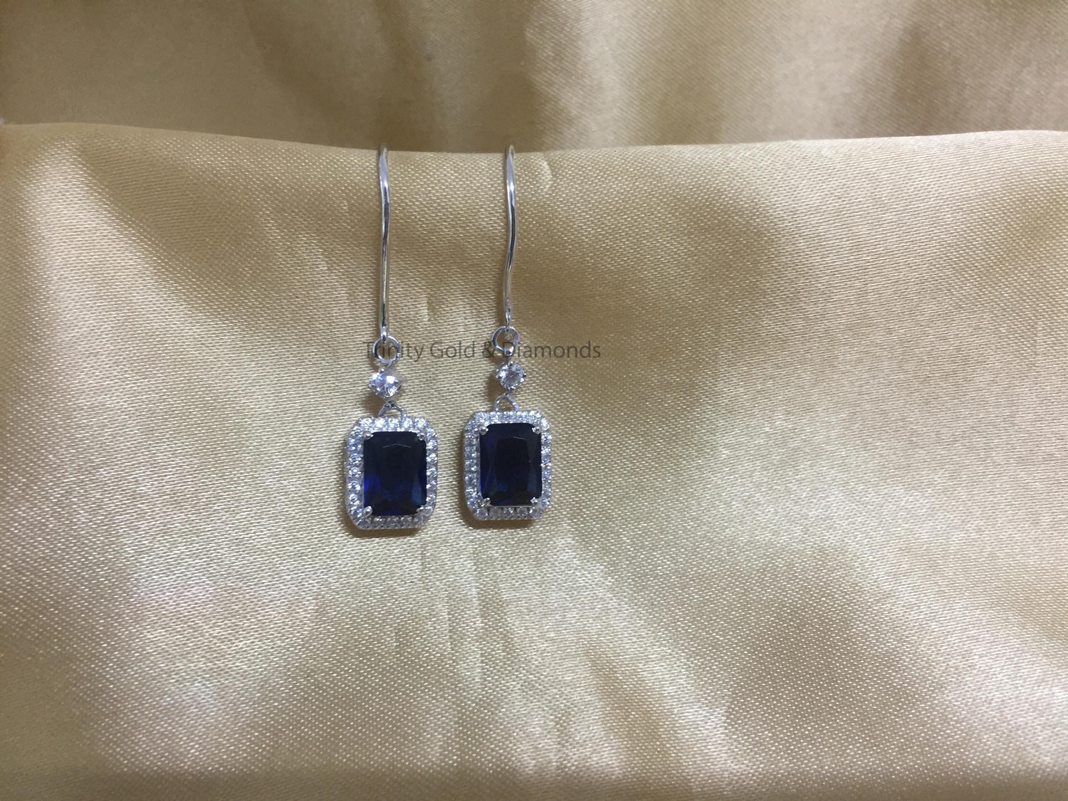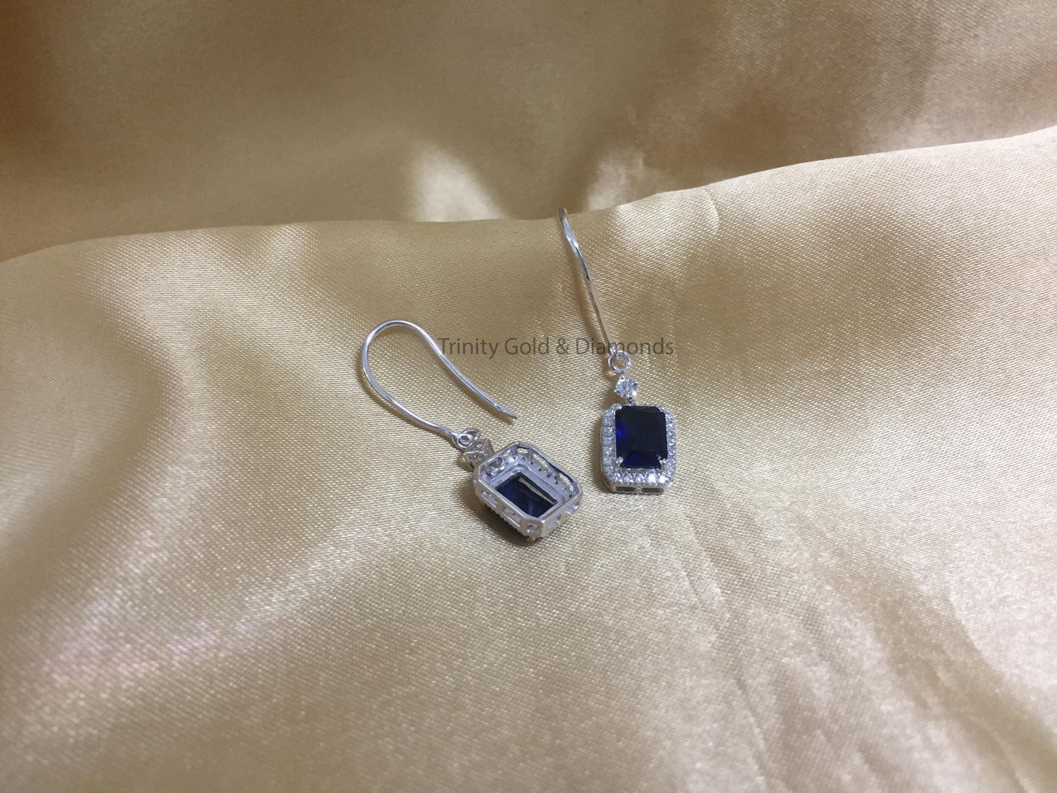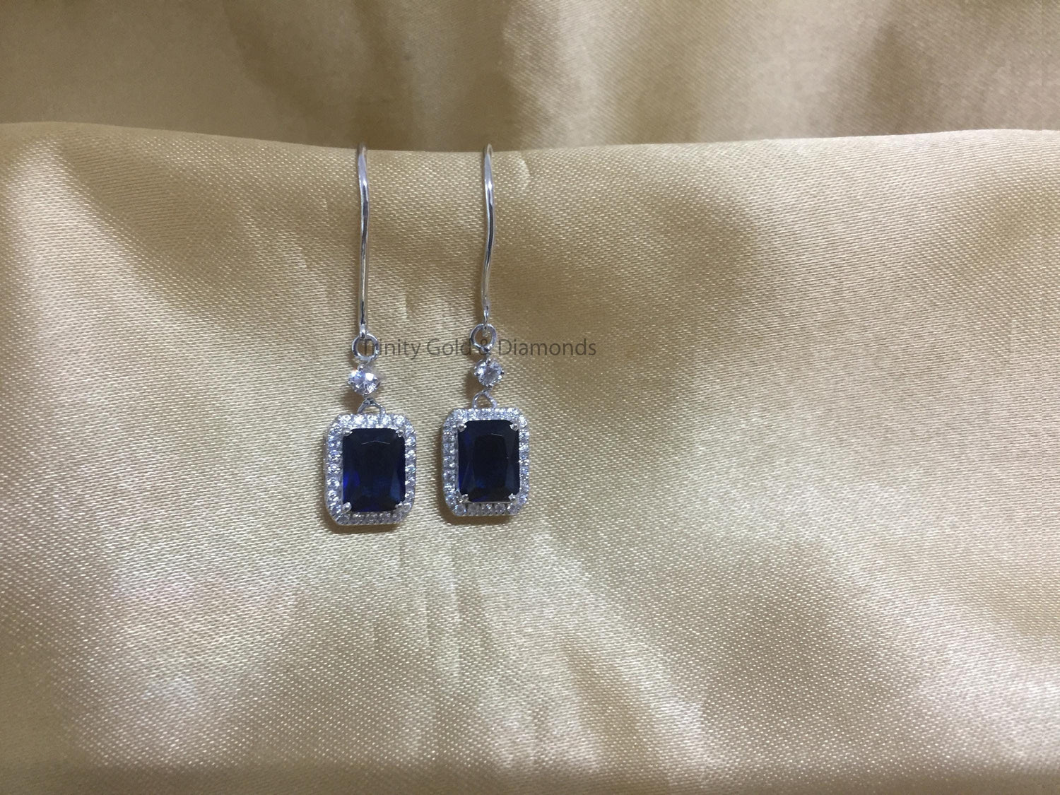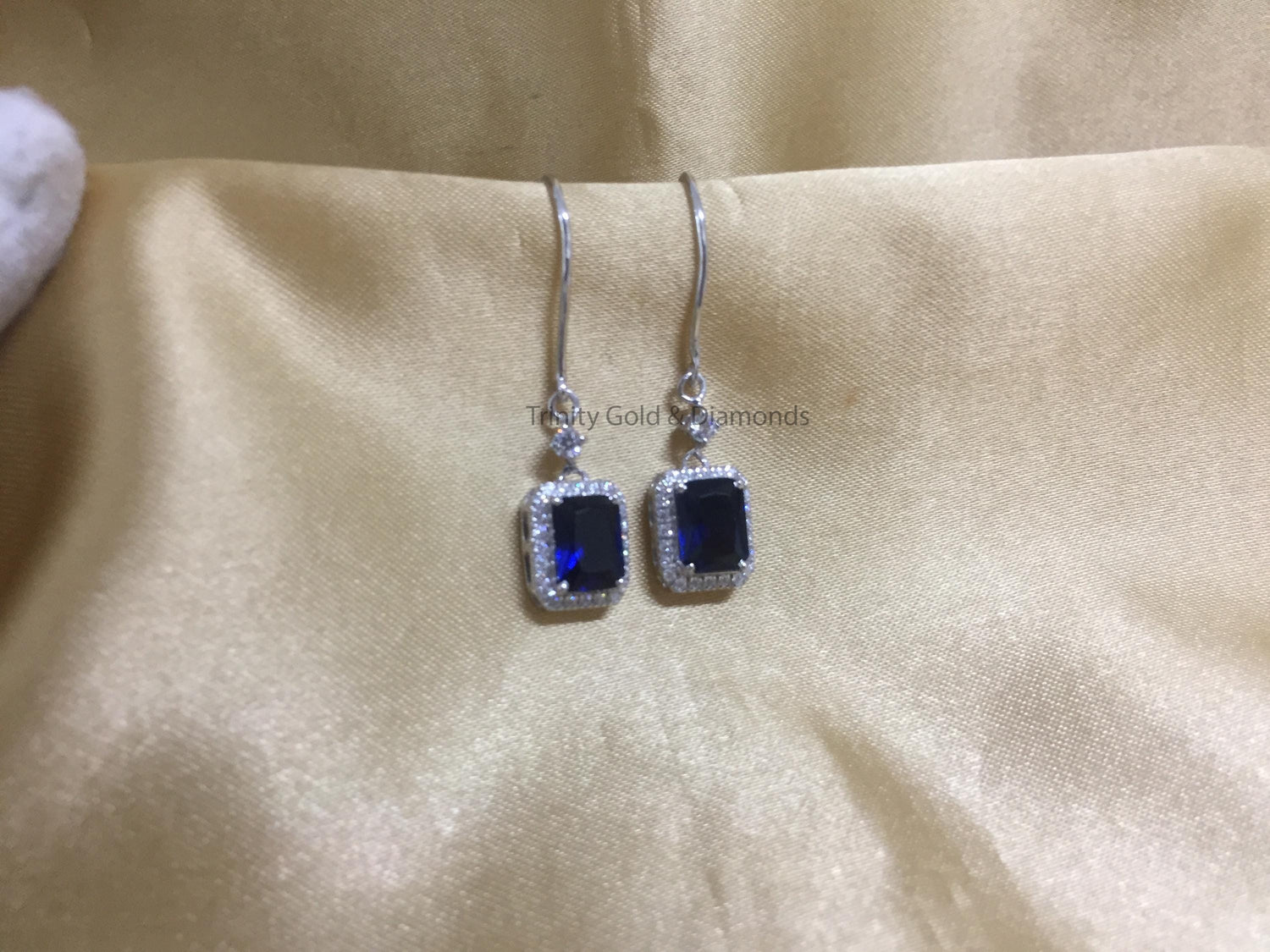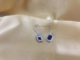 Sapphire Dangle Earrings • Emerald Cut Blue Sapphire and White Moissanite Diamond Earring For Women • Wedding Anniversary Gift • Wire Earr