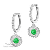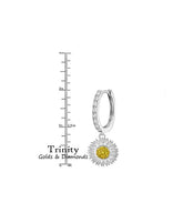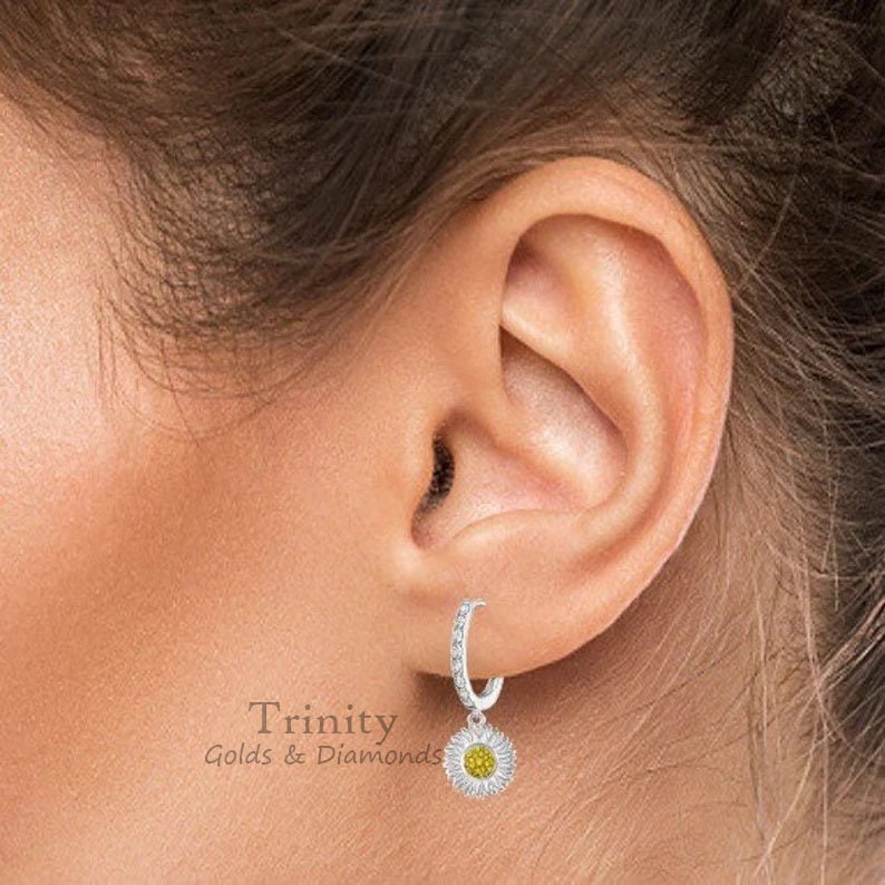 SILVER LONG DANGLE Earrings, Flower-Shaped Dangle Earring, Sunflower Diamond Earrings