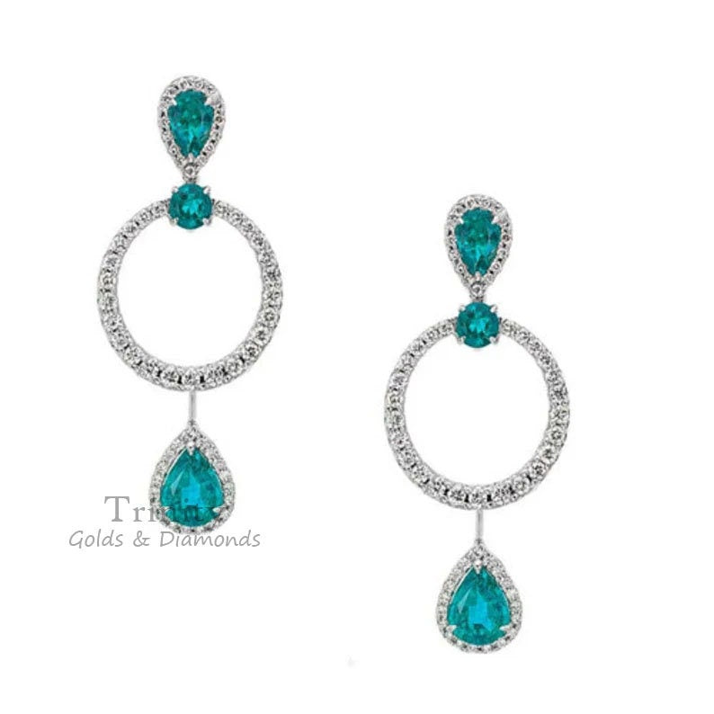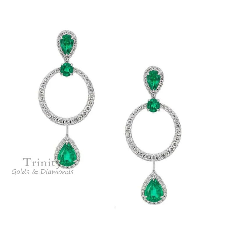 True Elegant ® Emerald Diamond Earrings / Pear Emerald Diamond Dangle Earring / Emerald Drop Dangle Earring / Natural Emerald Earring/Gifts