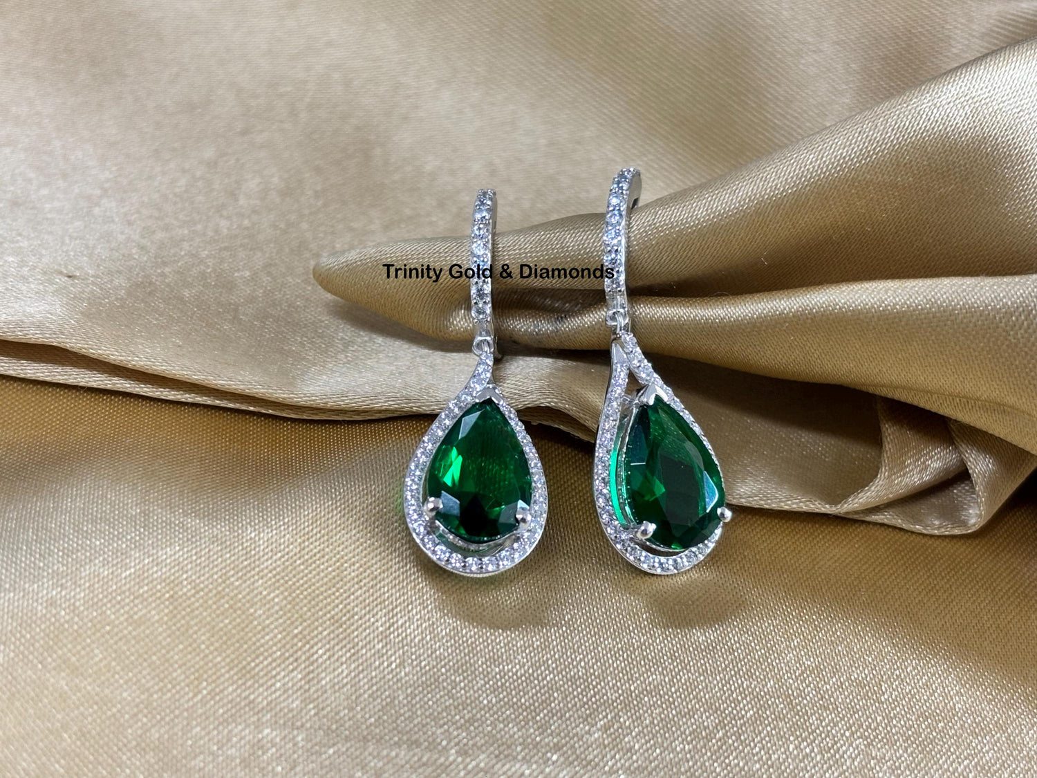 These stunning 2.0 carat green emerald-cut diamond earrings are set in sterling silver, offering a timeless and luxurious design. The emerald-cut diamonds dazzle with their brilliance, while the sterling silver setting adds a touch of elegance and durability. Perfect for special occasions or everyday wear, these diamond dangle earrings are the ideal gift for her, blending the beauty of emerald and diamond into a sophisticated piece of jewelry.