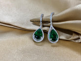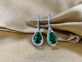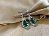 Green Emerald Cut Diamond Dangle Earrings for Her • Sterling Silver Emerald Diamond Earrings