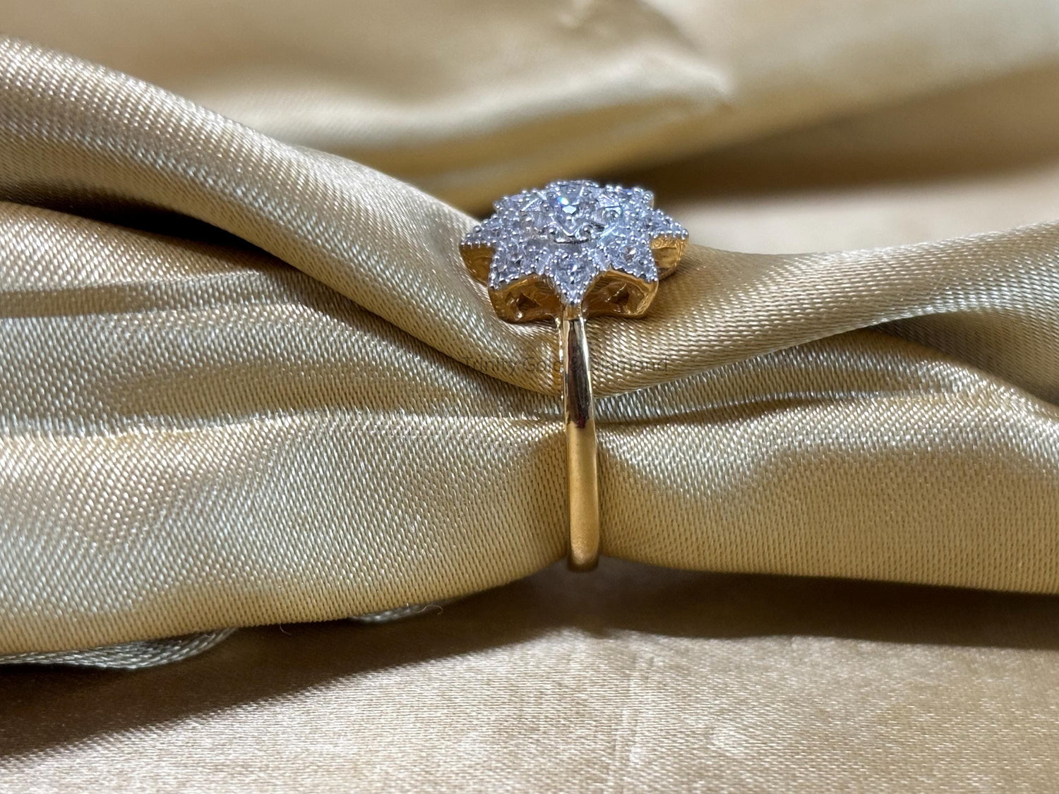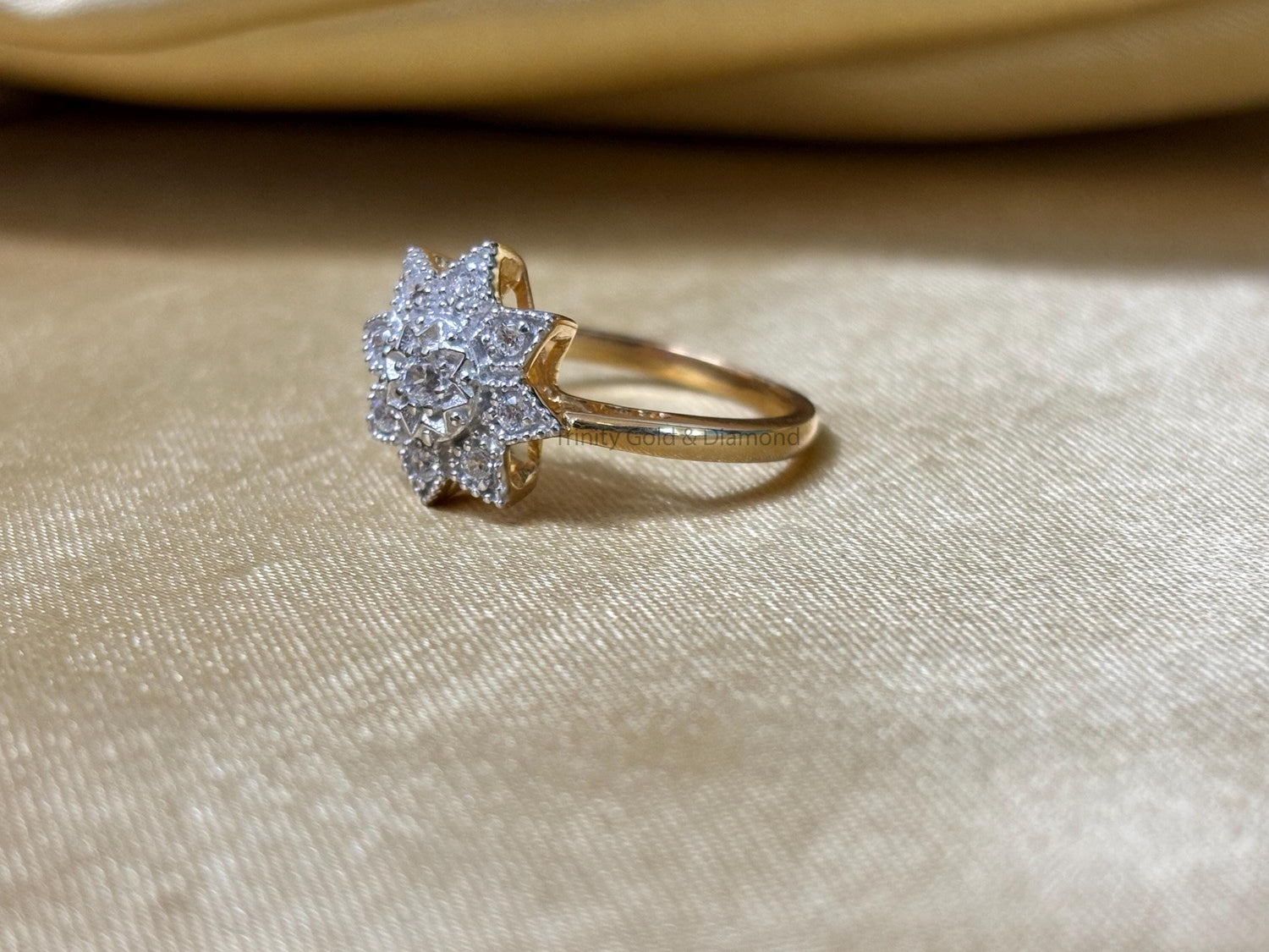 Celebrate timeless beauty with this Flower Shape Lab Grown Diamond Ring for Women, inspired by vintage Art Deco designs. Featuring a delicate floral motif adorned with shimmering lab-grown diamonds, this ring exudes elegance and sophistication.
