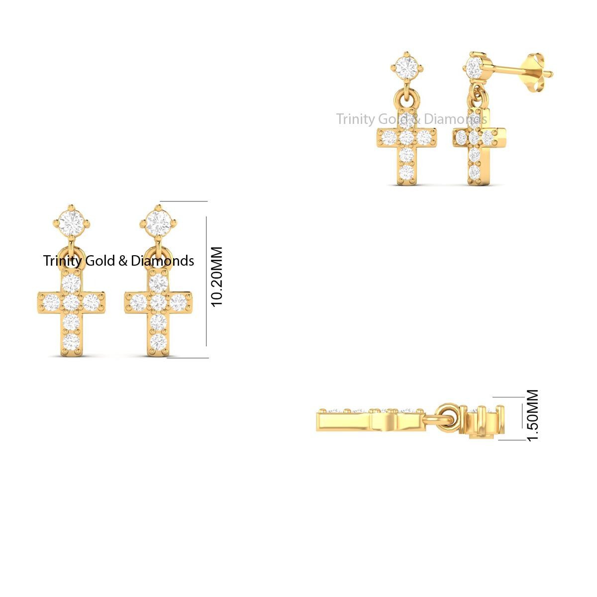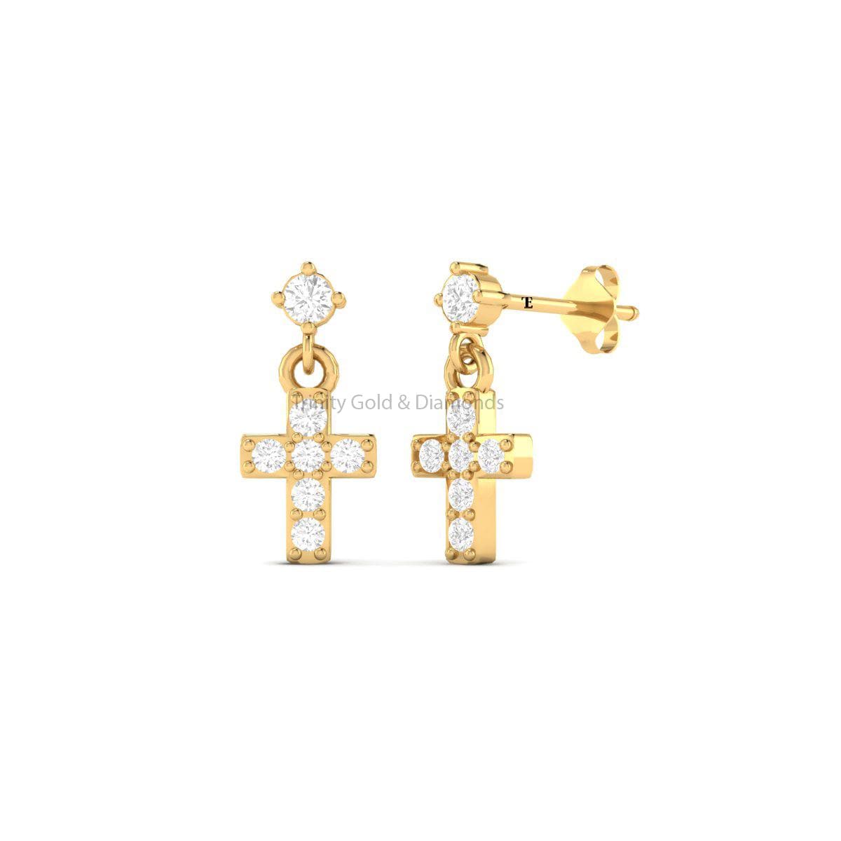 Handmade cross earrings, Lab-grown diamond earrings, Minimalist cross jewelry, Small dangle earrings, Dainty earrings for girls, Religious jewelry, Delicate cross earrings, Gift for her, Women's cross earrings, Spiritual earrings, Sustainable diamond earrings, Elegant cross jewelry, Fine jewelry for girls, Minimalist diamond earrings, Cross dangle earring