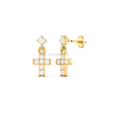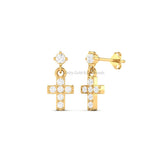 Handmade Lab Grown Diamond Cross Dangle Earrings • Small Minimalist Dainty Earrings for Girls • Delicate Cross Earrings • Perfect Gift for Her