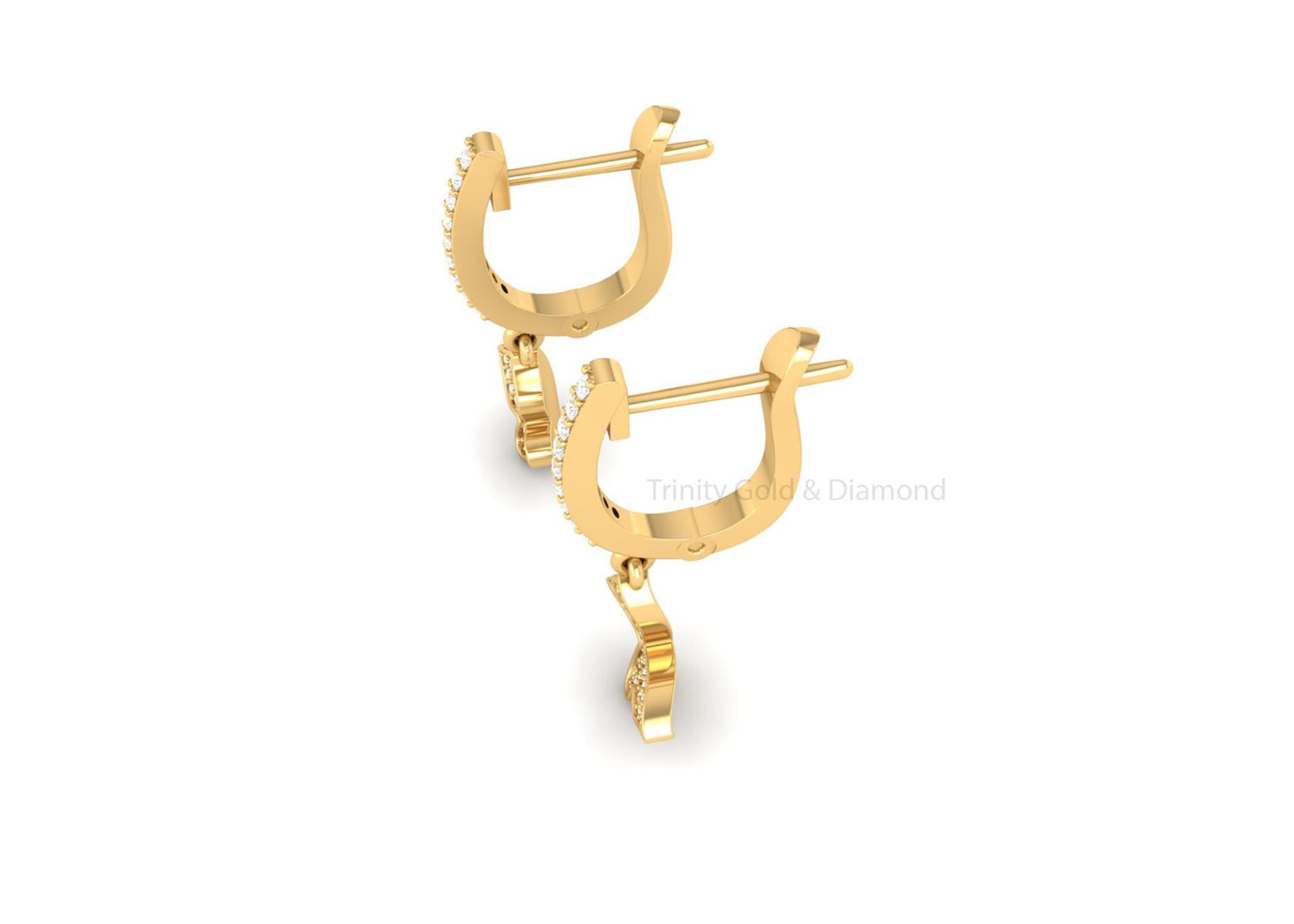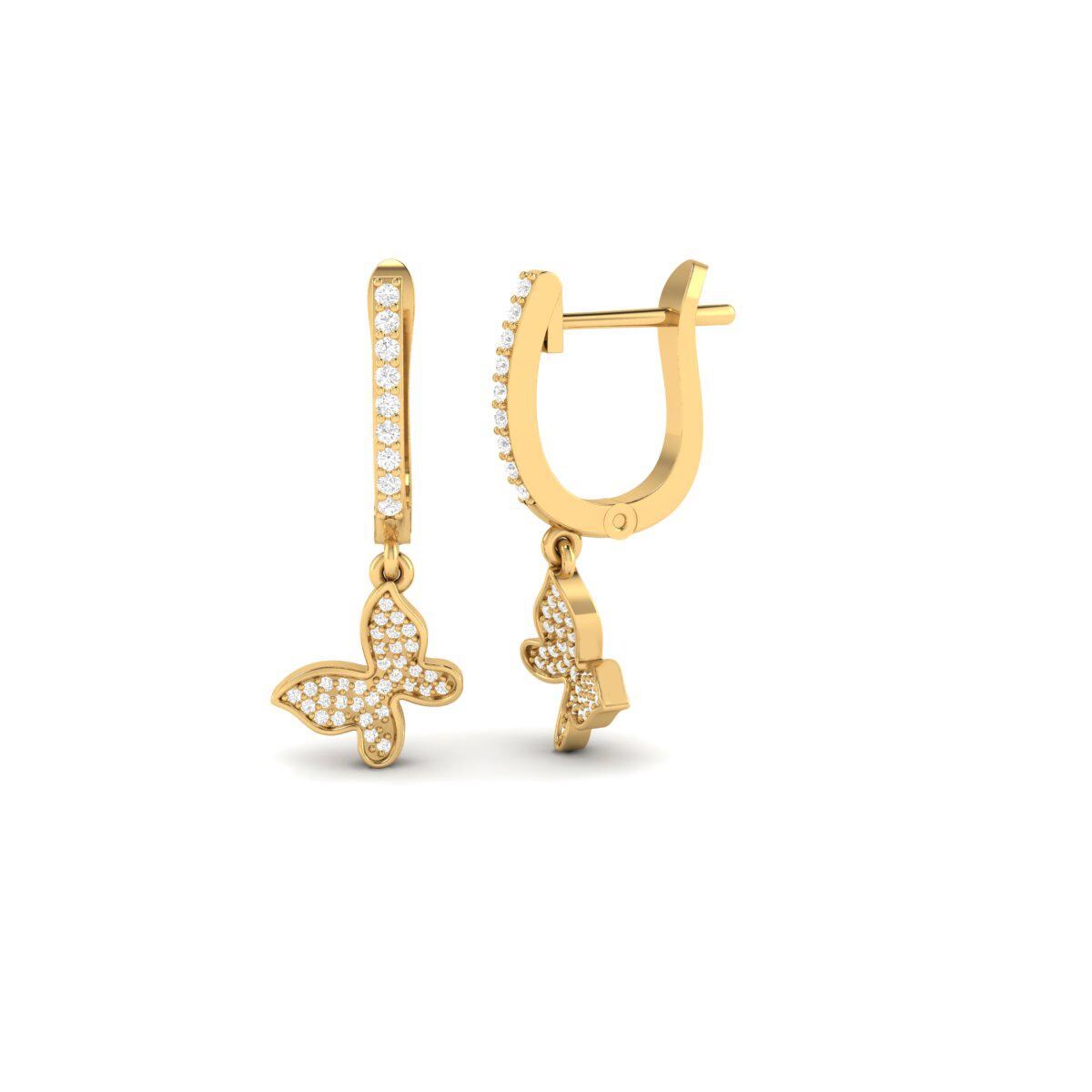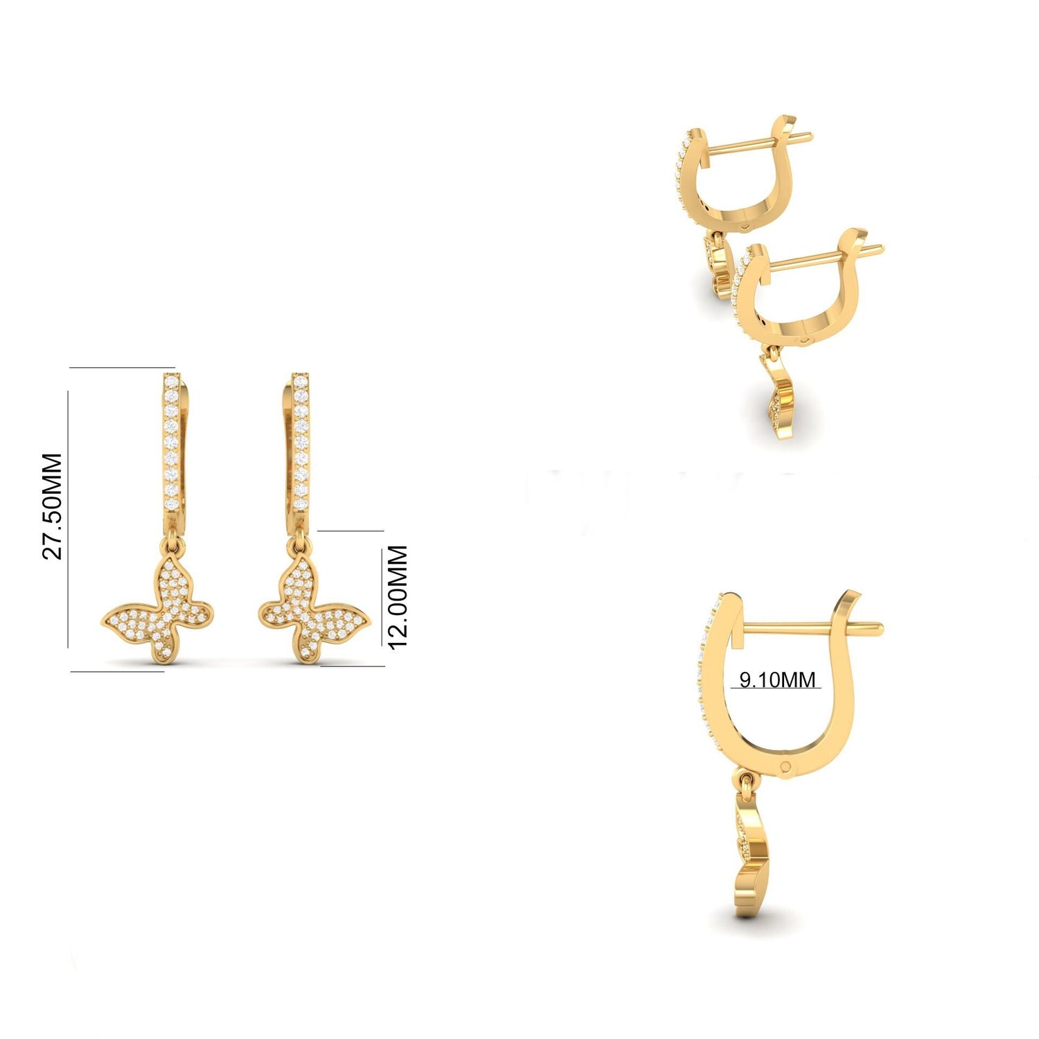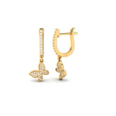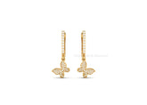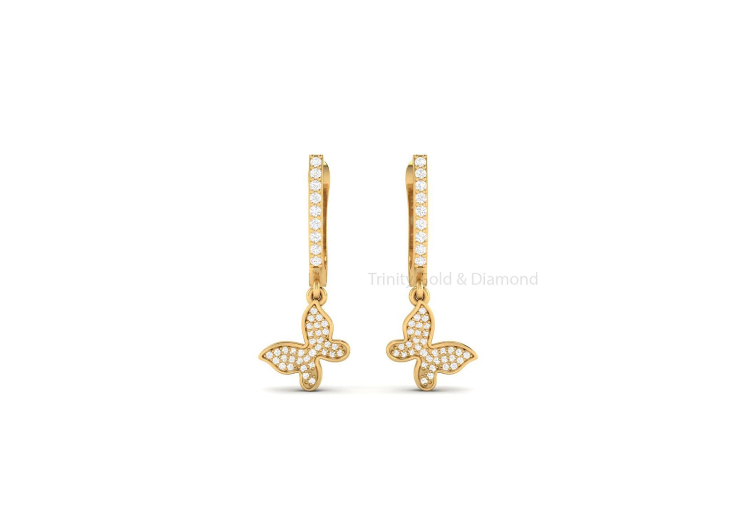 Add a whimsical charm to your outfit with these butterfly dangle hoop earrings. Featuring a sparkling butterfly charm hanging from a dainty pave hoop, these earrings combine elegance and playfulness. Lightweight and secure, they're perfect for daily wear or gifting to someone who loves nature-inspired designs.
