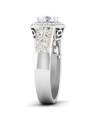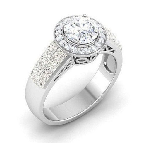 2.40Ct Round Cut Moissanite Diamond Ring, 925 Sterling Silver, Engagement Ring, Promise Ring, 14k White Gold Plated, Handmade Ring