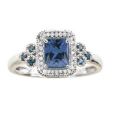 Emerald Cut Sapphire Engangement Ring, Moissanite Diamond Blue Sapphire ring, Birthstone Ring, Emerald Cut Halo Engagement Ring for Women
