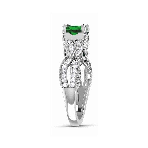 Emerald Ring, Emerald Engagement Ring, Emerald Princess Ring, May Birthstone, Sterling Silver Emerald Ring, Wedding Ring, Handmade Ring