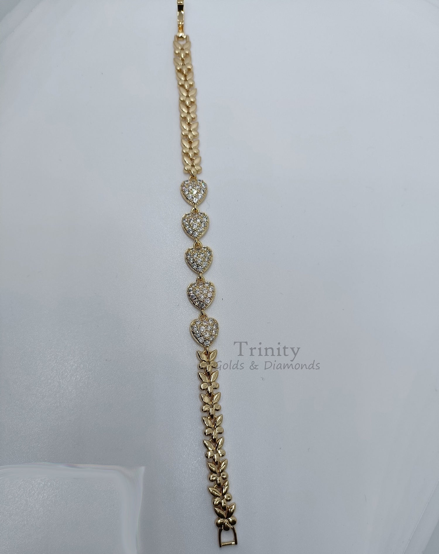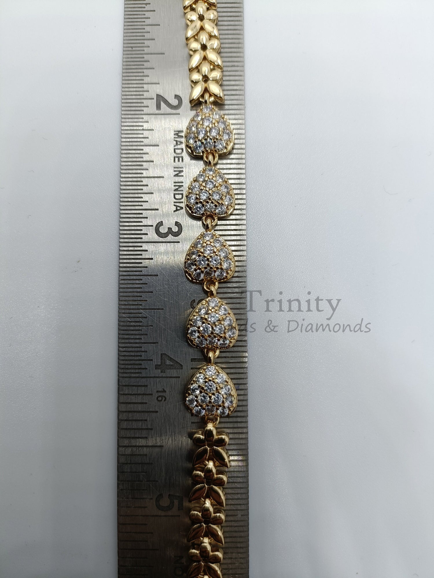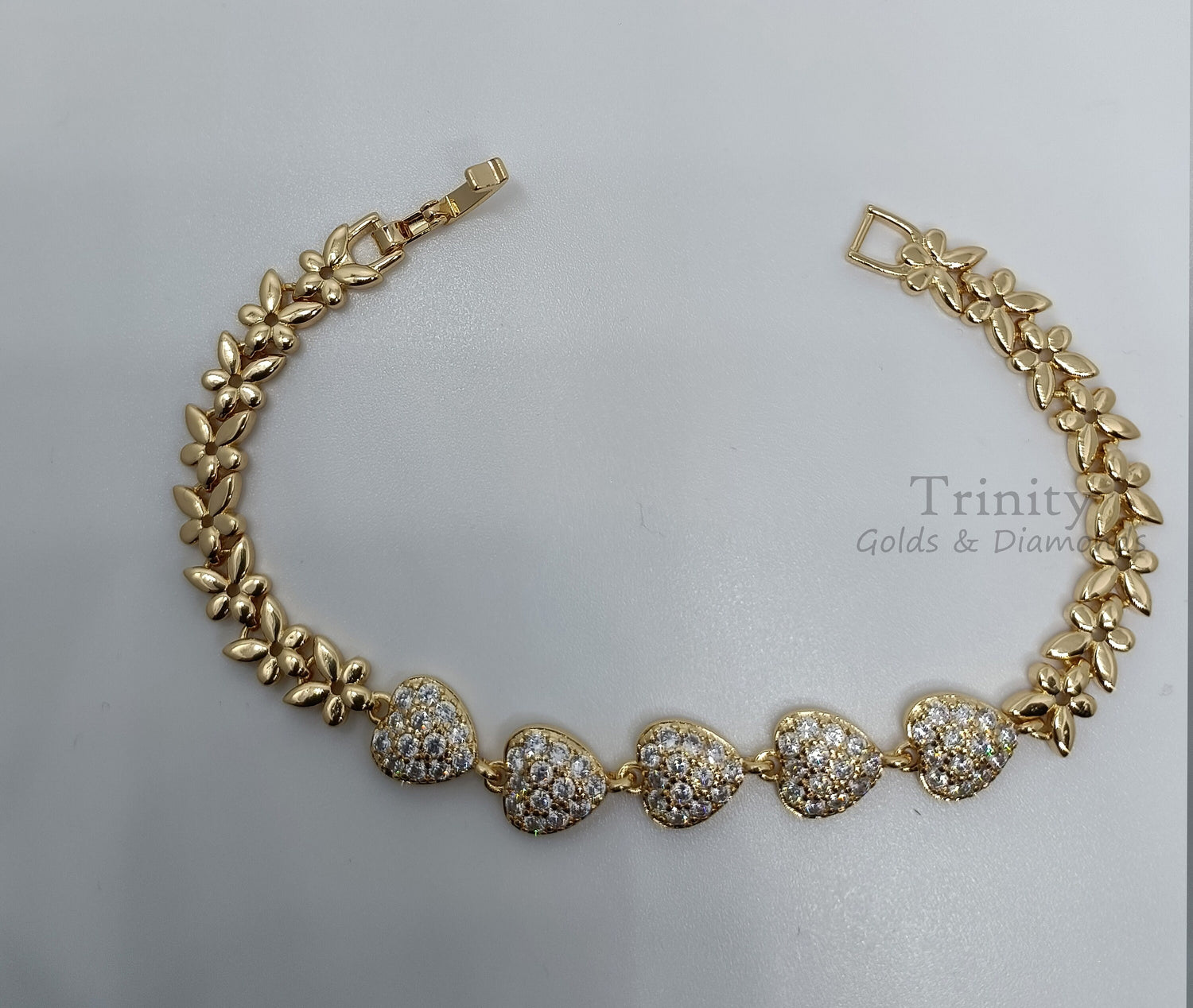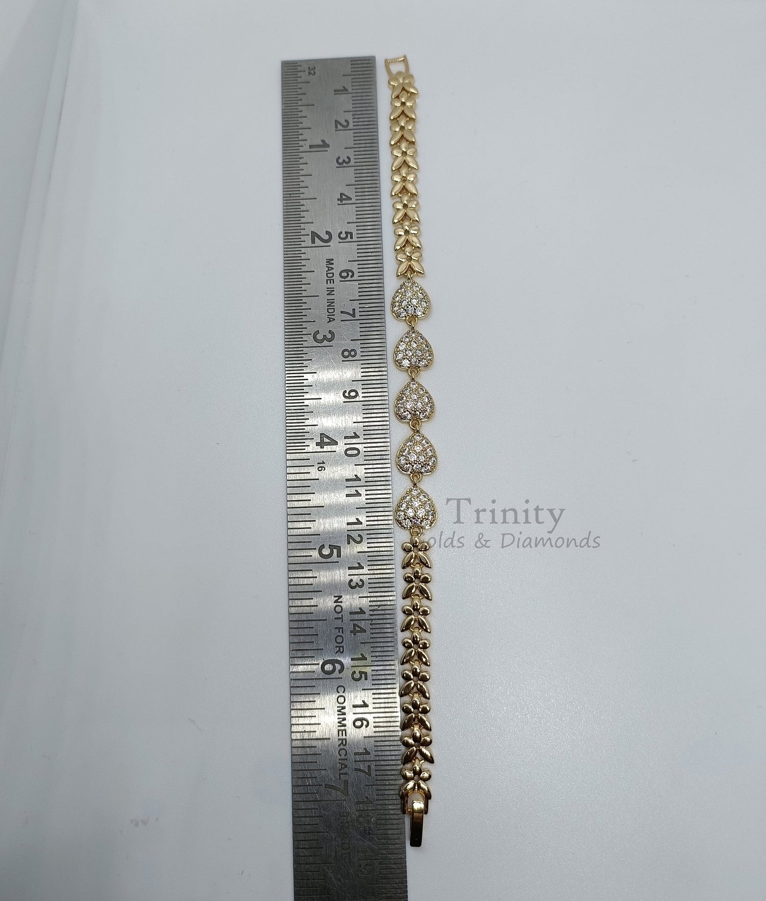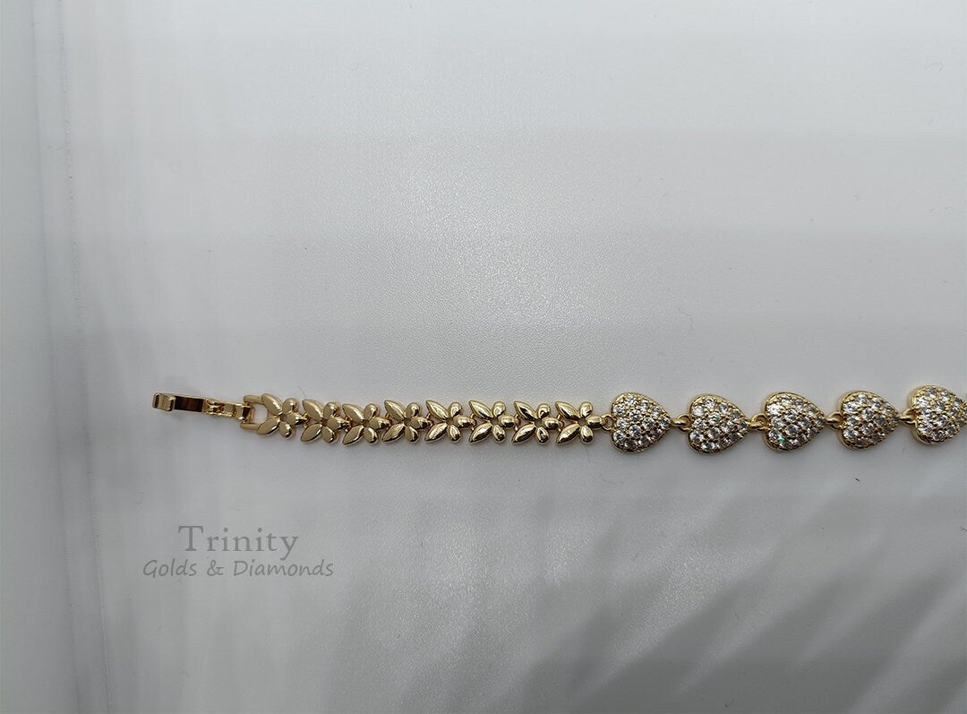 Heart Bracelet, Moissanite Diamond Heart Bracelet, Tennis Heart Bracelet, Perfect Gift For Women, 14KT Yellow Gold Plated, Size-5-12 inches