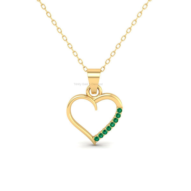 Emerald Accent Open Heart Pendant Necklace, Handmade Minimal Gold Jewelry Gift for Her, Dainty Romantic Charm