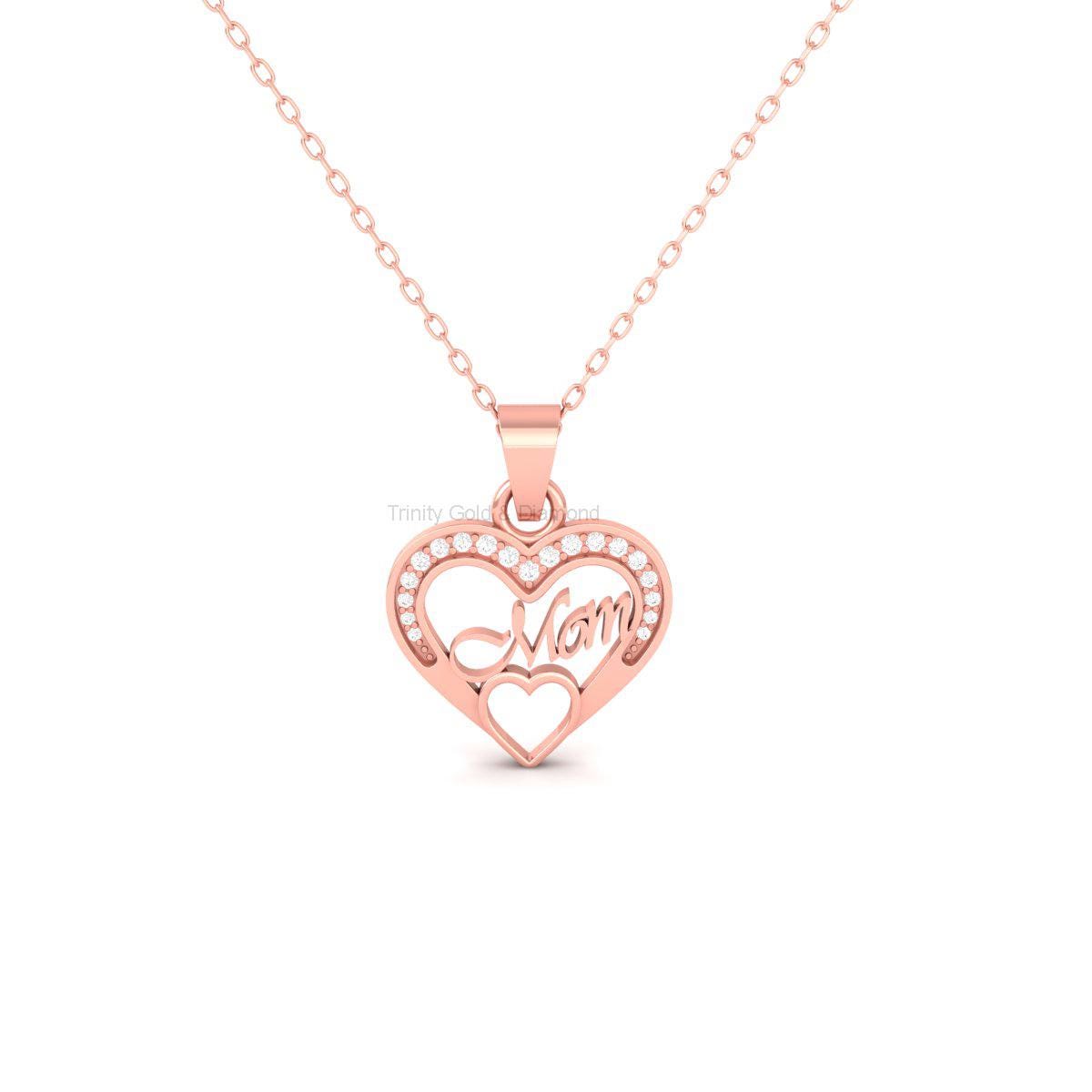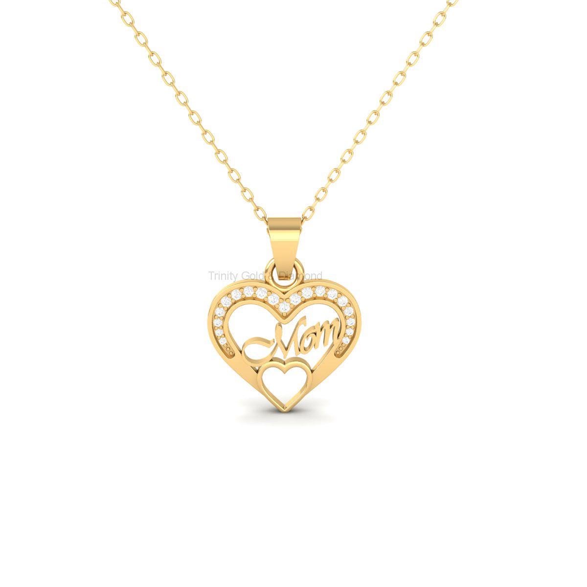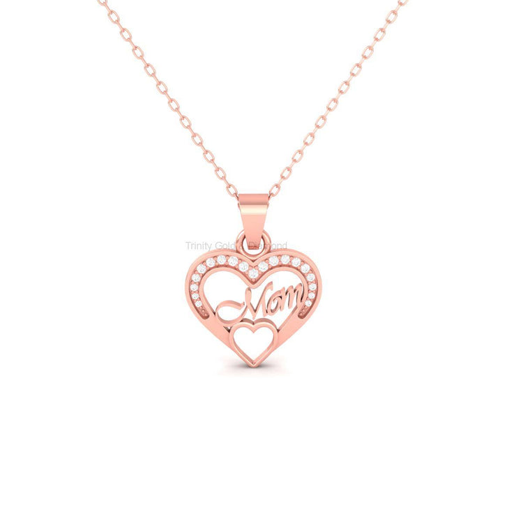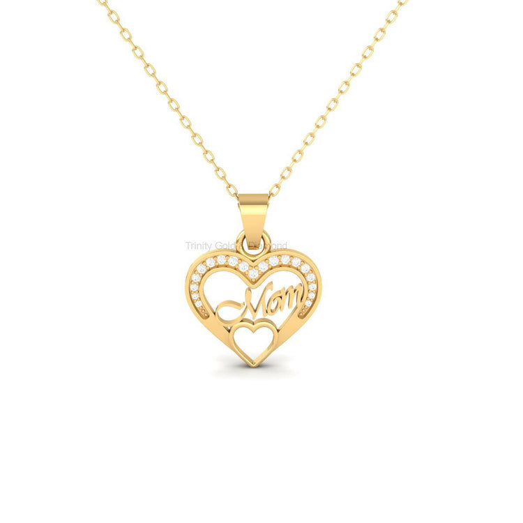 Mom Heart Pendant Necklace with Moissanite, Handmade Gold Jewelry Gift for Mother, Dainty Mom Charm for Birthday or Mother's Day