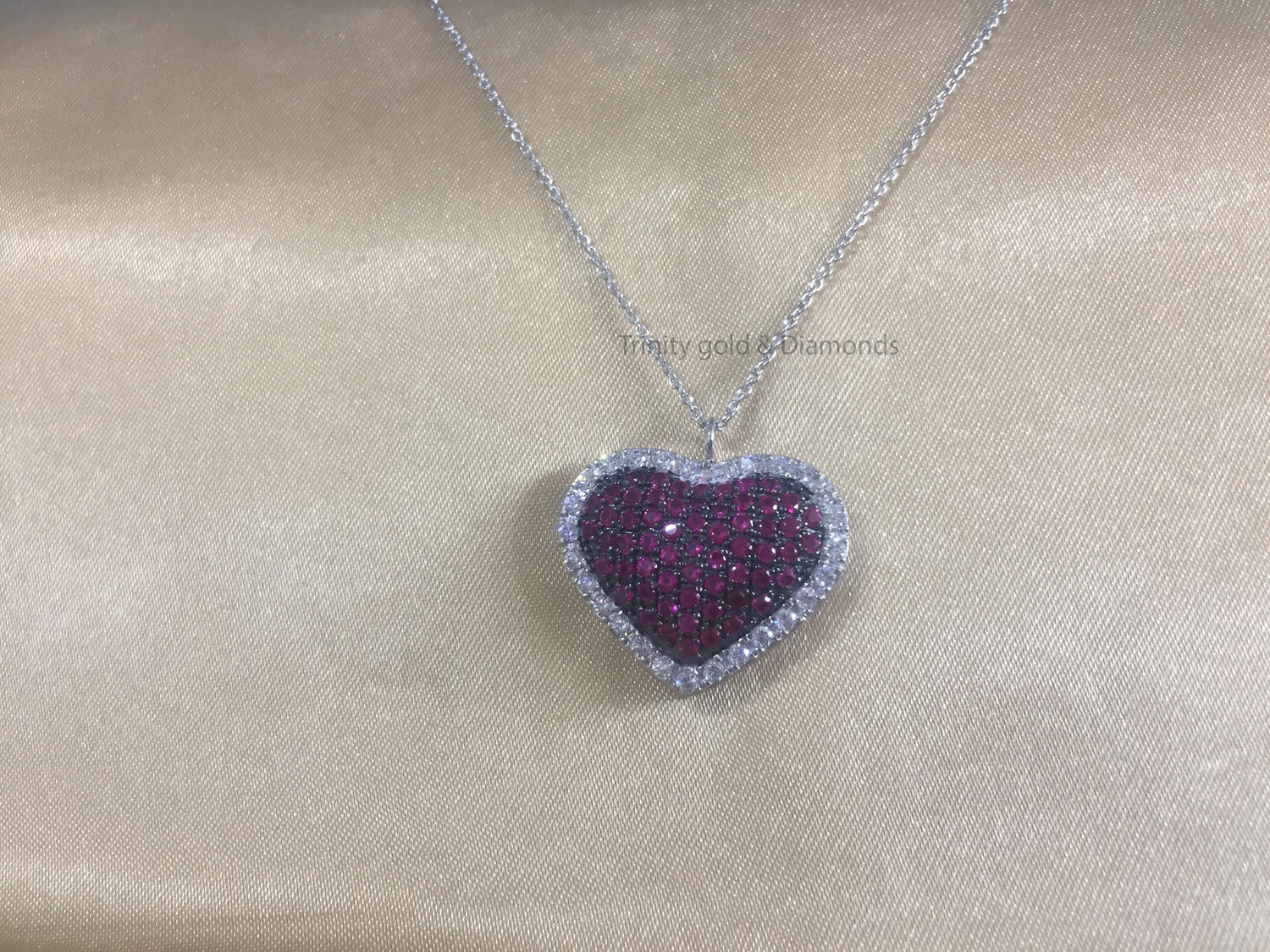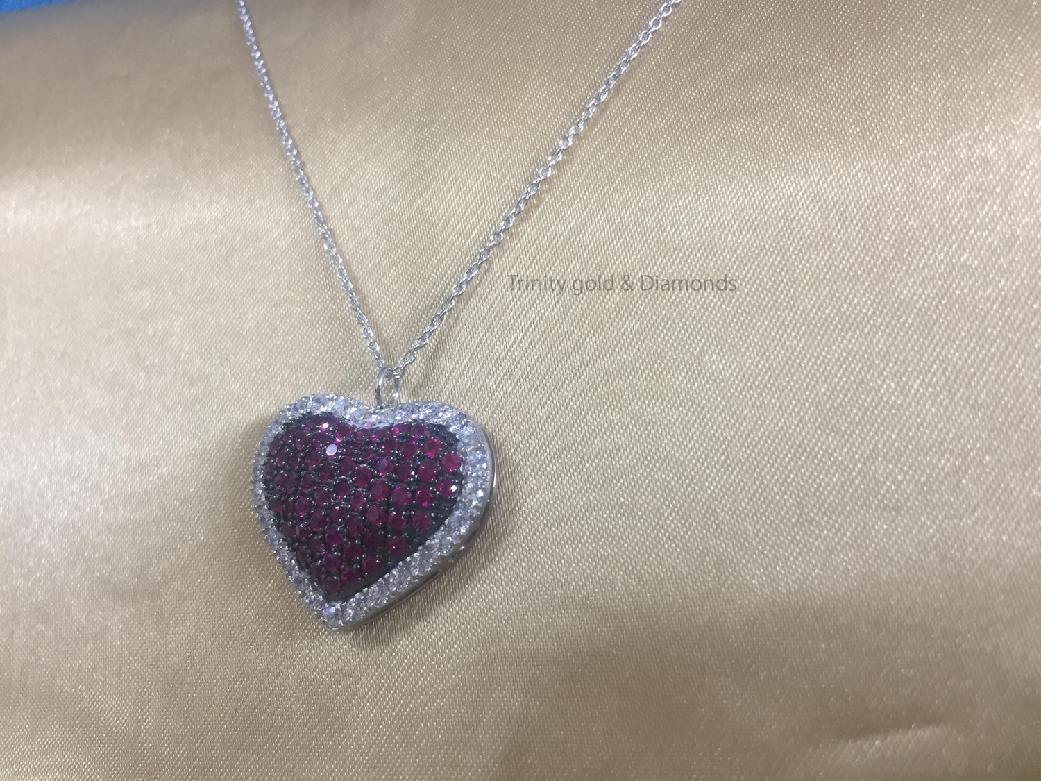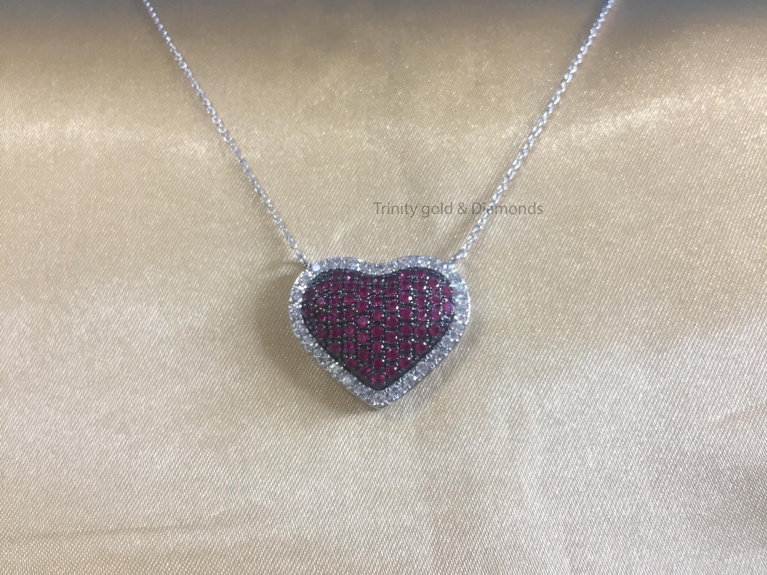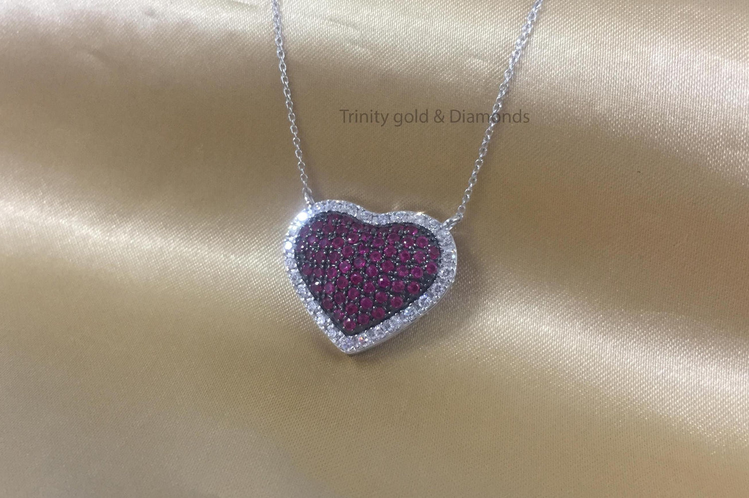 1.0CT Ruby Heart Pendant Necklace For Women • White Moissanite & Created Ruby Gemstone Pave Heart Pendant Perfect Mothers DayGift •