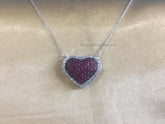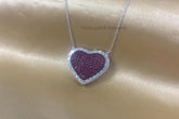 1.0CT Ruby Heart Pendant Necklace for Women • White Moissanite & Created Ruby Pave Heart Pendant • Perfect Thanksgiving Gift