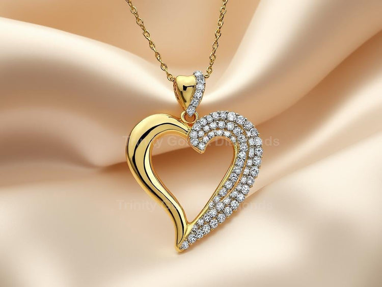 Flowing Heart • Open Swirl Diamond Accent Elegant Heart • Curved Sparkling Swirl Heart • • Gemstone Flow Heart • Modern Heart Gift for Her