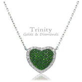 True Elegant ® Pave Emerald And Diamond Heart Pendant In 925 sterling Silver , Mother's Day gift, Emerald Heart Pendant , Big Heart Pendant