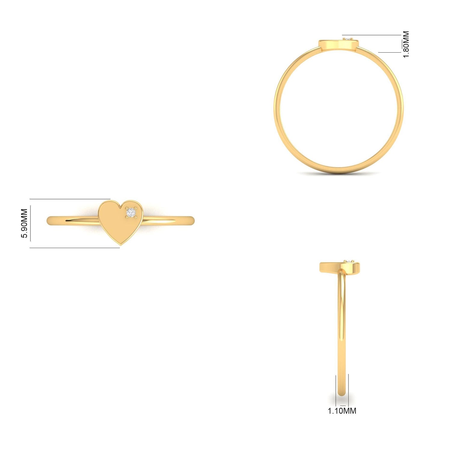 Heart size: 5.90mm wide x 1.80mm tall with center diamond