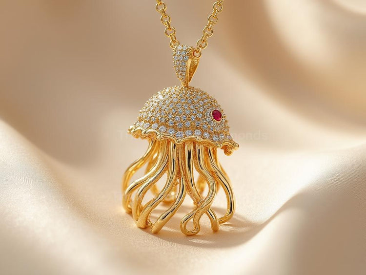 Coastal Summer Style •Jellyfish Pendant Necklace • Pavé Sea Life Charm • Ocean Animal Jewelry for Her • Ruby Accent Marine Gift