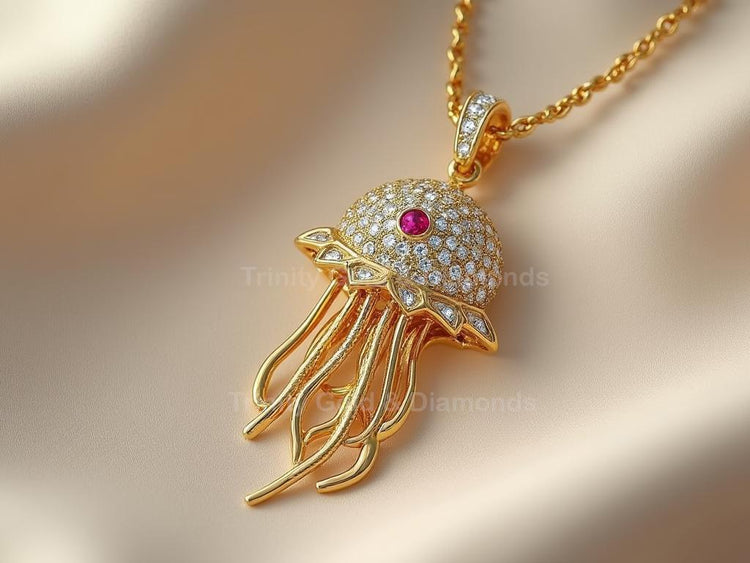 Capture the beauty and boldness of marine life with this radiant crab pendant necklace. Designed with detailed claws, sparkling pavé-set stones, and a striking ruby-like centrepiece, this pendant symbolizes protection, resilience, and oceanic energy. Ideal for beach styling, Cancer zodiac gifts, or ocean-themed collections, this crab adds a luxurious touch to your summer wardrobe.