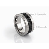 Bold, modern, and timeless — this wide band ring for men features a striking contrast of polished silver finish and pavé-set black CZ stones. The brushed edges give it a contemporary industrial look, while the inner band remains smooth and comfortable for daily wear. Ideal for wedding bands, anniversary gifts, or elevated hip hop style, this ring is all about confidence and clean-cut masculinity. image is ai generated.