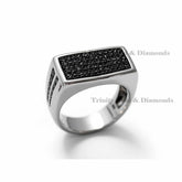 Silver Statement Signet Ring with Side Stone Accents, Urban Hip Hop Jewelry, Gift for Him, Men’s Black CZ Rectangle Ring,