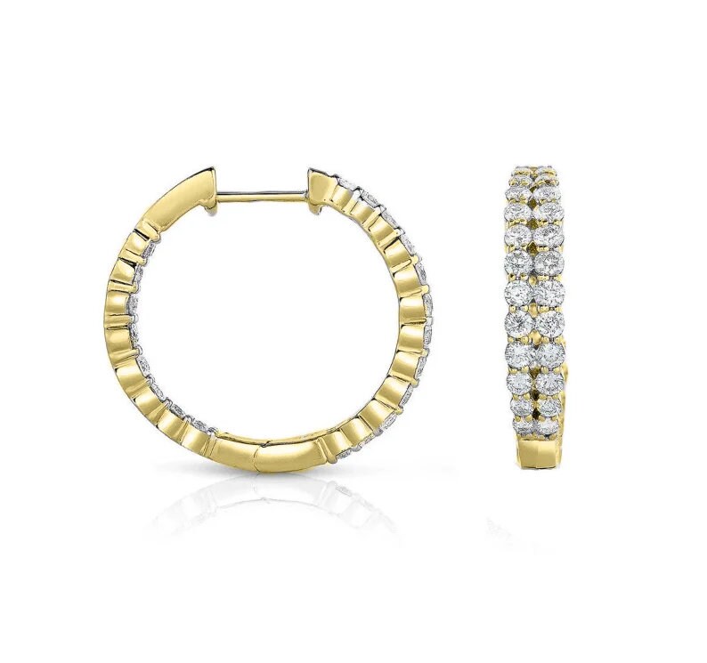 2.30 Ct Round Cut Moissanite And Diamond Earrings, Hoop Women's Earring, Handmade Earrings, 14k White Gold Plated, Valentine Gift For Her