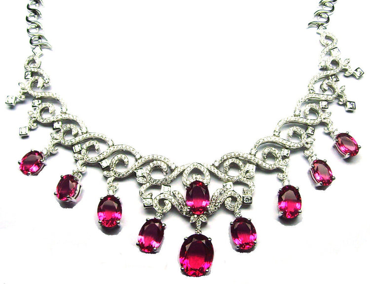 14.0CT RUBY OVAL DIAMOND Drop Necklace 10kt White Gold Over 925 Sterling Silver Bridal Jewelry,Bridal Necklace Wedding Jewelry,Gift For Her