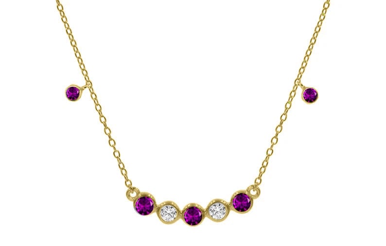 Amethyst Diamond NECKLACE, Bezel Gemstone Necklace, Sterling Silver Amethyst Necklace With 14kt Gold Plating, Wedding Necklace, Gift For You