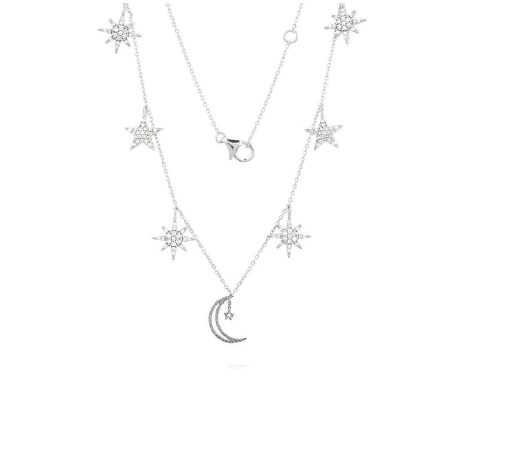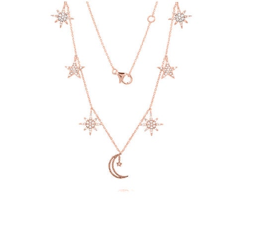 Dainty Gold Star Moon Choker, Moon&Star Dangle Necklace, Trendy Layering, Festive Jewelry, Star Sterling Silver CZ Charm, Mother's Day Gift