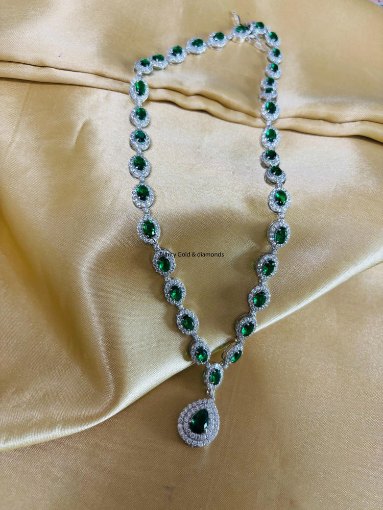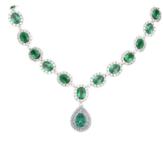 Emerald Necklace, Pear Oval Necklace, Diamond Necklace, Gold Necklace, Silver Necklace, Bridal Emerald Necklace, Wedding Jewelry