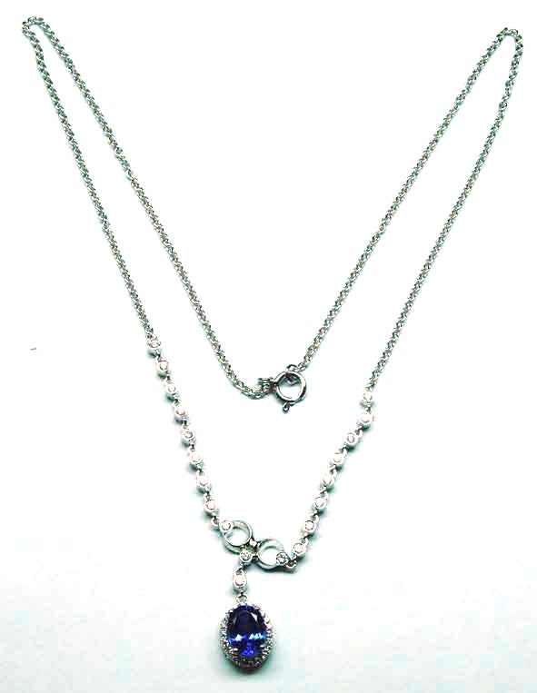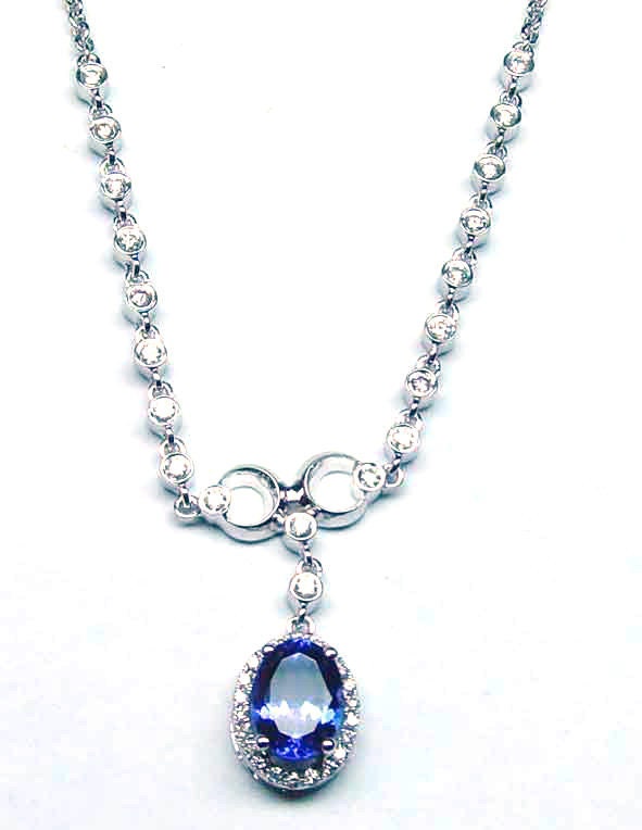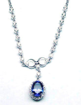 Oval Sapphire Necklace, Bezel Set Chain Necklace, Oval Sapphire Halo Chain Necklace, 18 Inch with Cable Chain, Perfect Gift for women