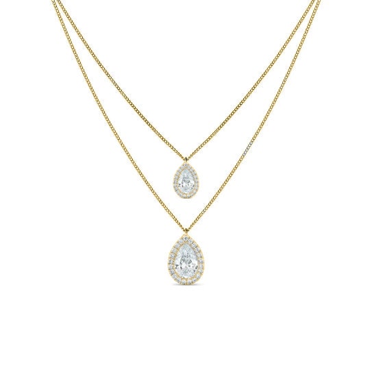 Pave Set Pear Cut Diamond Necklace In Sterling Silver, 14k Gold Plated Over, Pave, Dainty, Necklace, Bridal, Wedding, Christmas gifts For Women's