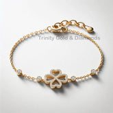 Open Heart Clover Bracelet, Gold Four Leaf Clover Charm Bracelet, Pavé Outline Lucky Bracelet, Dainty Adjustable Gift for Women