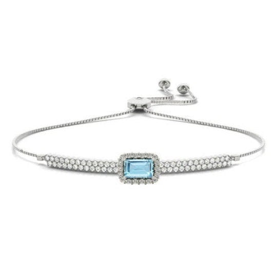 TOPAZ BOLO BRACELET, Blue Emerald Cut Topaz And Moissanite Diamond Bolo Adjustable Bracelet, Sterling Silver Bracelet,Bolo Bracelet, Gifts