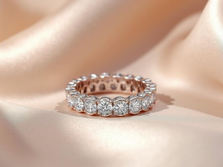 Unique Half Bezel Prong lab Grown Round Solitaire Eternity Band • Full Eternity Ring for Women • Statement Diamond Wedding Band Gift for Her