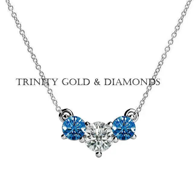 Handmade 3.0CT Lab-Created Sapphire and Moissanite Three-Stone Necklace • Wedding Necklace • Sapphire & Diamond Pendant • Everyday Necklace
