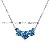 3.00 Ct Round Cut Blue Sapphire Three Stone Dainty Delicate Necklace For Her, Sapphire Delicate Necklace, gemstone Dainty Necklace, Gift Her