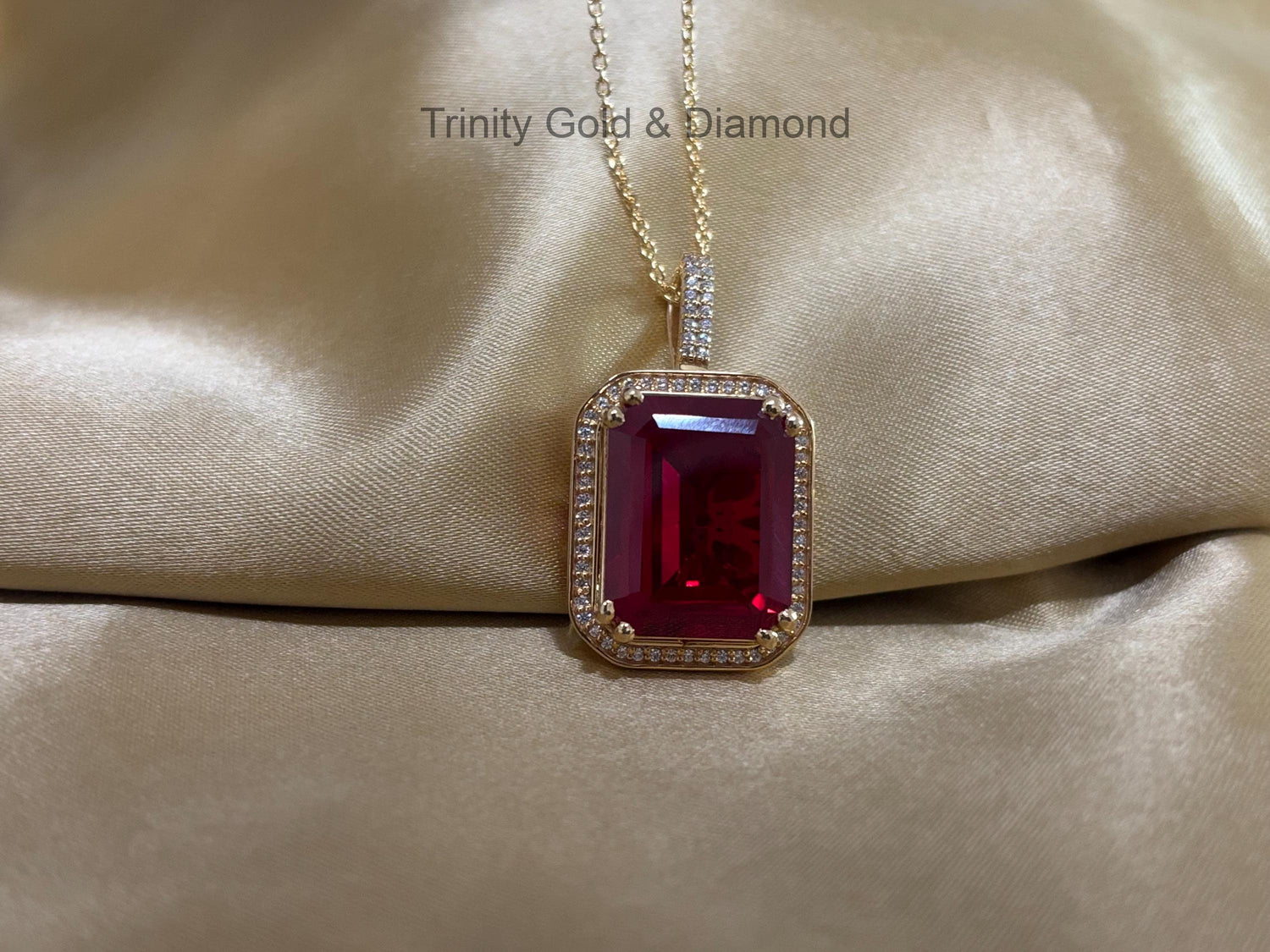 Big Ruby Pendant • Diamond Halo Big Pendant for Women • Classic Moissanite Diamond Pendant for Her