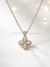 Clover Diamond Pendant Necklace in Yellow Gold, Teardrop Marquise Petal Pendant, Four Leaf Floral Diamond Charm, Gift for Her